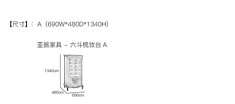 亚振家具 - 六斗梳妆台 产品尺寸/示意图