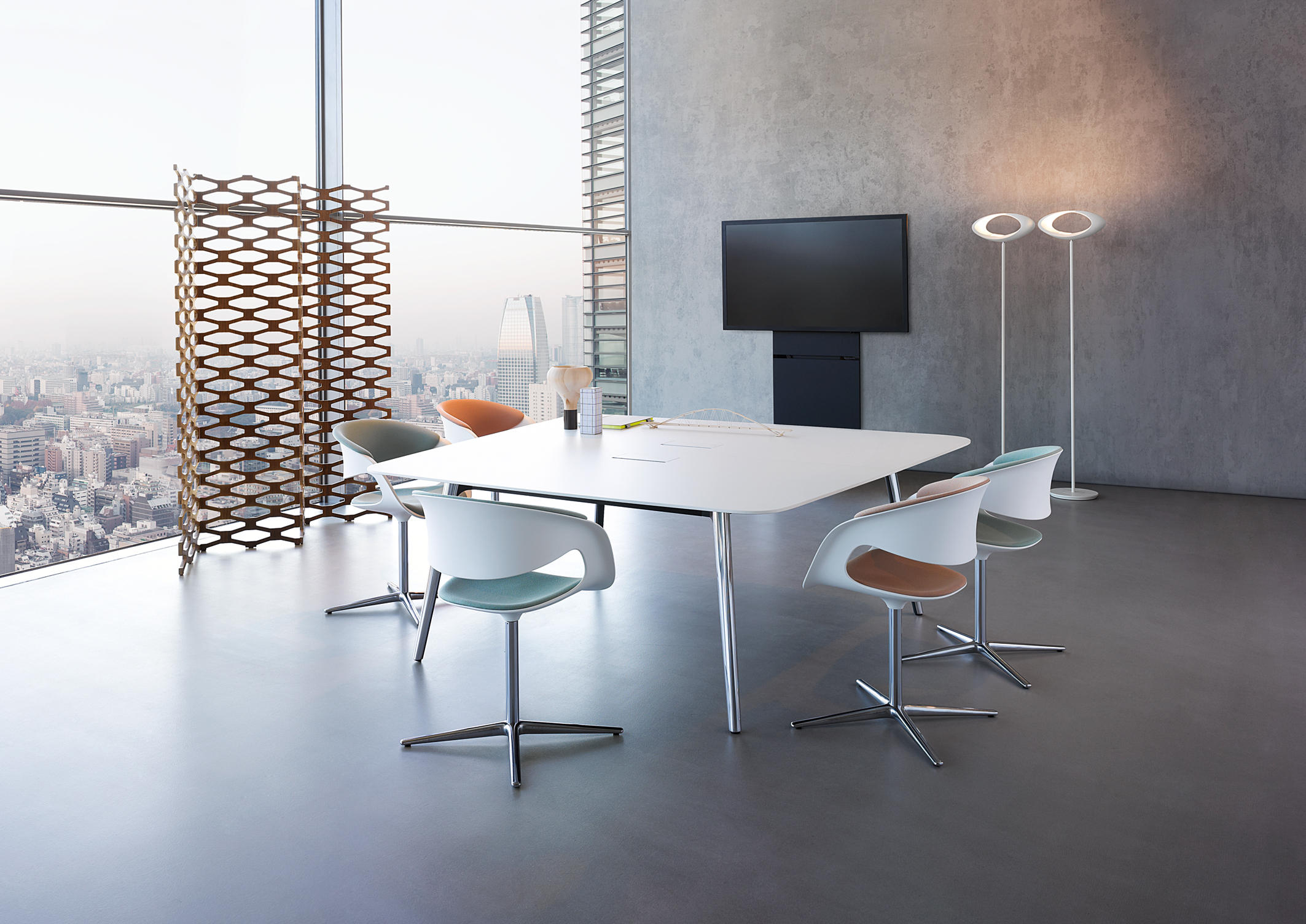Keypiece系列是现代会议的会议桌方案。它满足了从小到企业培训大到例行董事会会议的所有要求。高质量的和多变的系统是这款会议桌的一大亮点,桌面如镜,桌脚长而细都是设计师对极简主义美学的敬意.