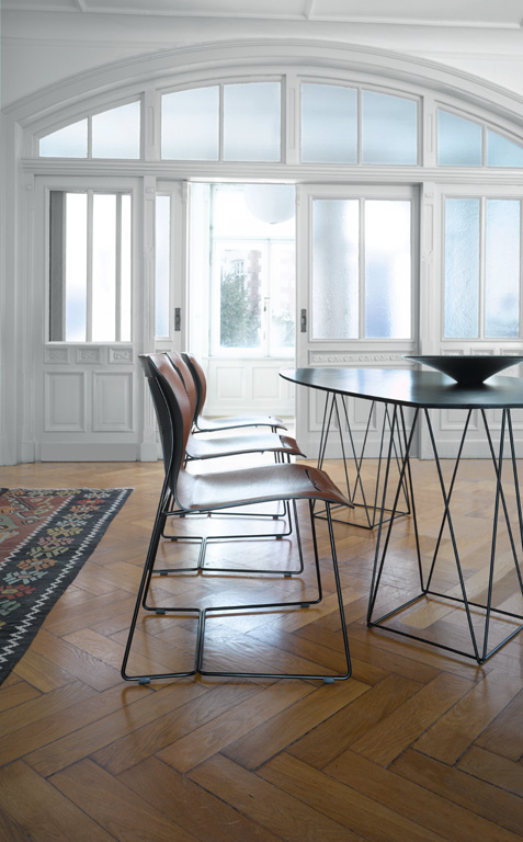 极简的设计逻辑决定了Cuoio椅子的形状与材质。金属与皮革形成框架与表面。永恒的极简主义。椅子是可分离和回收的,这确保了它是可持续的奇迹。座椅和背部的裂痕使椅子具有经典的造型,灵活的背部确保舒适,形成舒适的座椅。这款有趣的椅子有两个款式以供选择,分别是有扶手和没有扶手。颜色也有黑色和棕色以供选择。同时也是Joco Dining餐桌的不二选择。
