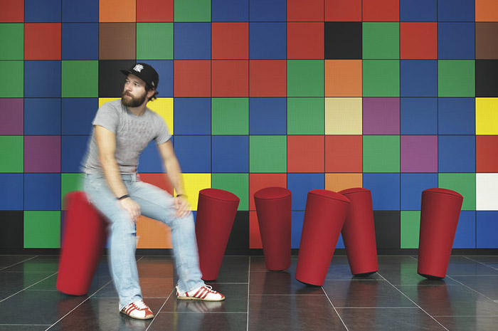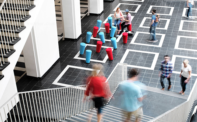 置身于轻松的人群中,没有人能抗拒这些五颜六色、欢快、引人注目的物品。它们对自发的健身也很理想,同时也带来了促进健康的好处。这些独腿的坐具,在人坐在斜对角上后,就会变成动态的三条腿,还可以使臀部动起来,让思绪飞起来。关节得到锻炼,肌肉得到加强。他们还邀请了互动。即使从50个角度来看,在轻轻一推之后,他们也会重新摆回自己的位置。换句话说,这个时髦的伴侣是一种有趣的方式来对待严肃的(工作)生活。