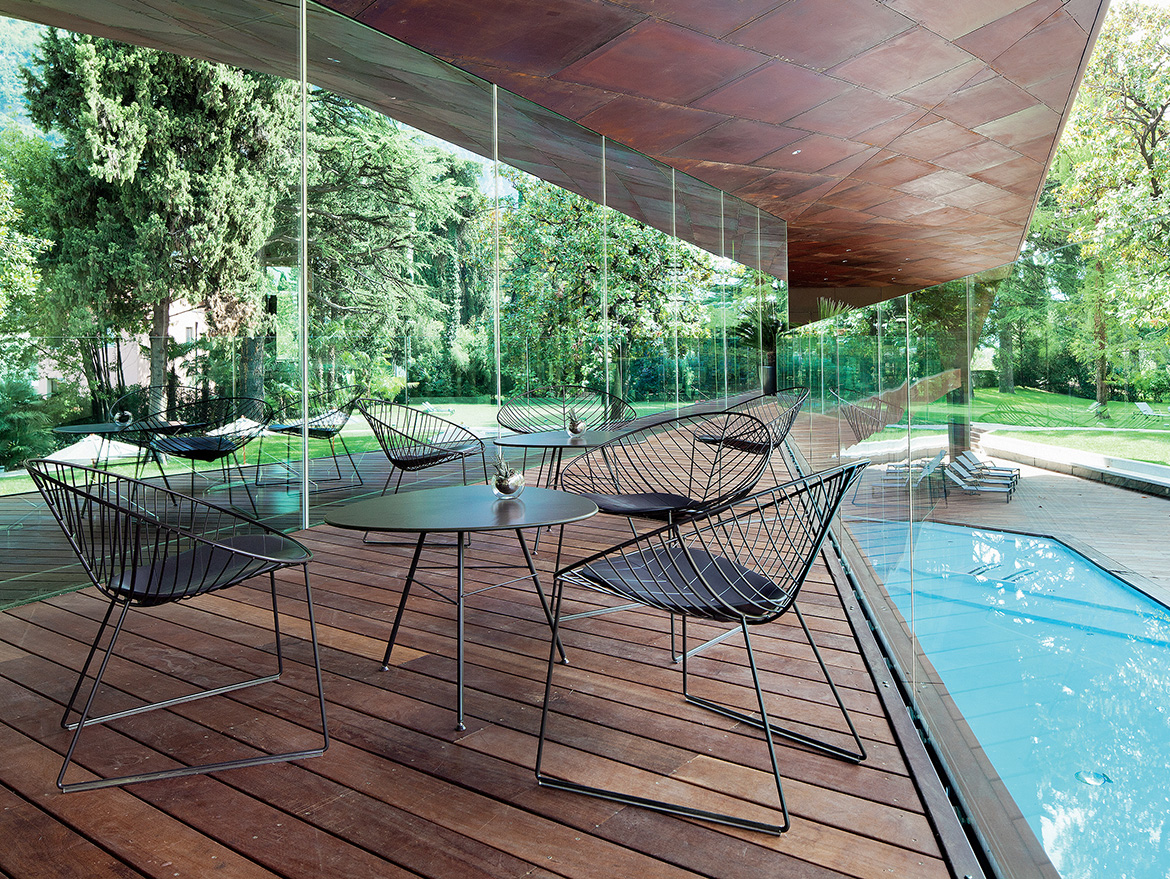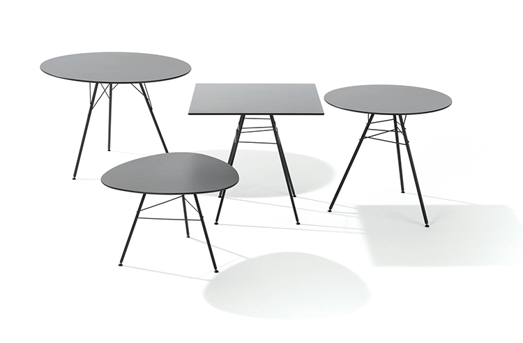 基座有三脚或四脚。全部采用白色,摩卡或绿色涂漆钢材制成。防水HPL上衣有灰色可供选择。