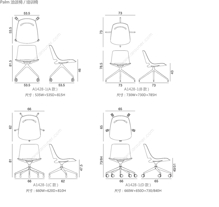 Palm 洽谈椅/培训椅 系列尺寸/示意图