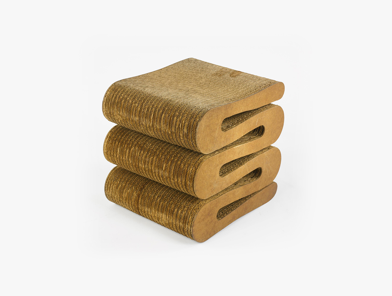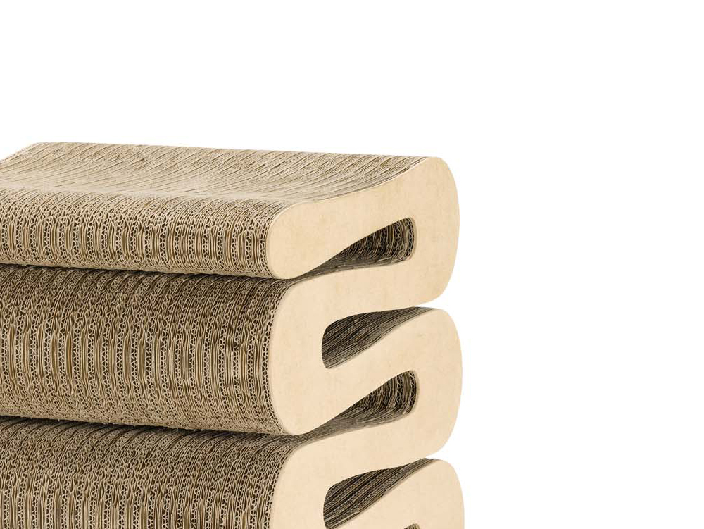 Wiggle Stool是Frank Gehry 1972年家具系列“Easy Edges”的一部分,该系列成功地为纸板等日常材料引入了新的美学尺寸。 标志性的凳子结实耐用,为任何室内装饰增添了醒目的音符。