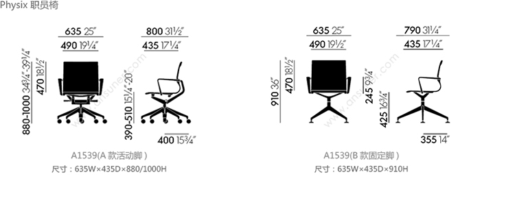 PHYSIX 职员椅 系列尺寸/示意图
