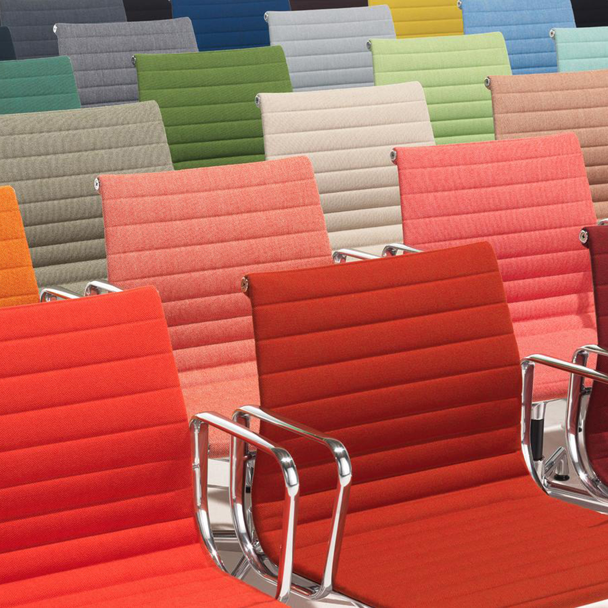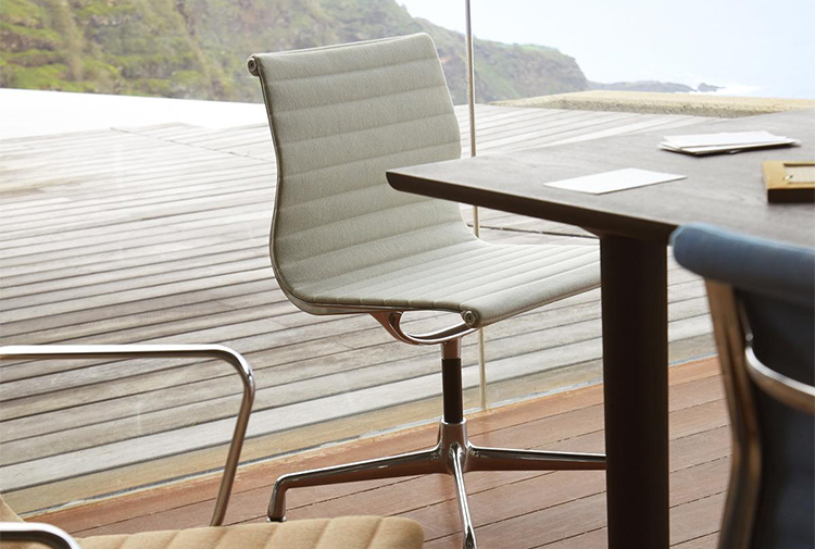 Charles和Ray Eames的铝椅EA 101,EA 103和EA 104非常适合与桌子组合使用:与铝组的其他型号相比,它们更轻,更高,更窄。 由于室内装潢具有多种柔和鲜艳的色彩,因此很容易找到适合任何餐厅的完美椅子。 这三种型号的不同之处在于基座的类型 - 固定或旋转 - 以及是否存在臂。