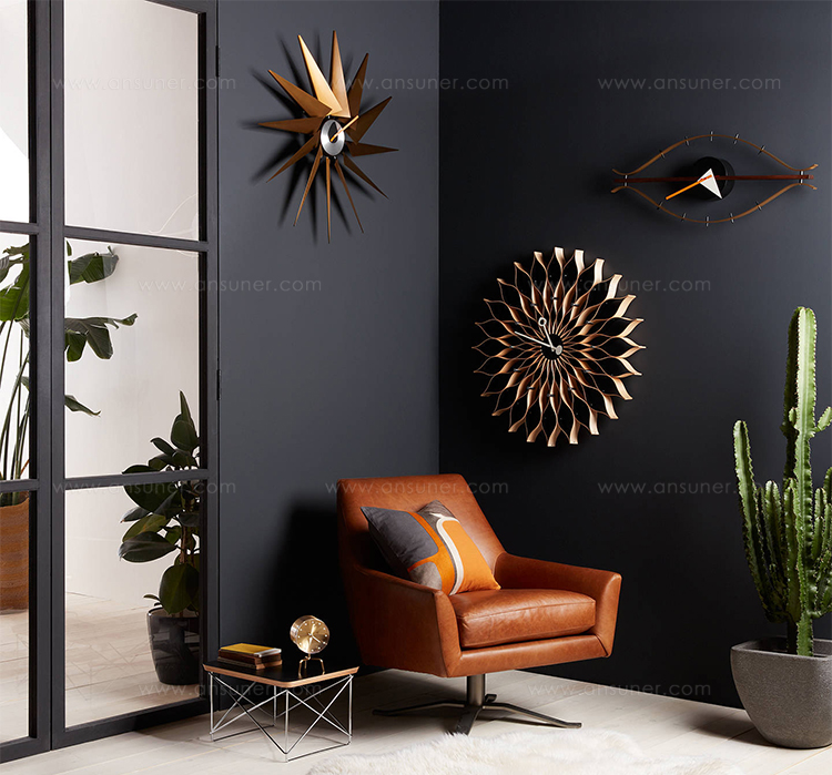 信仰进步和日益增长的经济繁荣是1950年左右美国生活方式的核心方面。一切似乎都有可能,人们努力做到“现代”。 为了将现代设计融入美国家庭,乔治·尼尔森构思了各种日常用品:灯具,钟表和其他家居饰品。 直到20世纪70年代,尼尔森办公室为家庭创造了许多不同的物品,包括泡泡灯和球钟,它们成为了本世纪中期现代设计的象征。