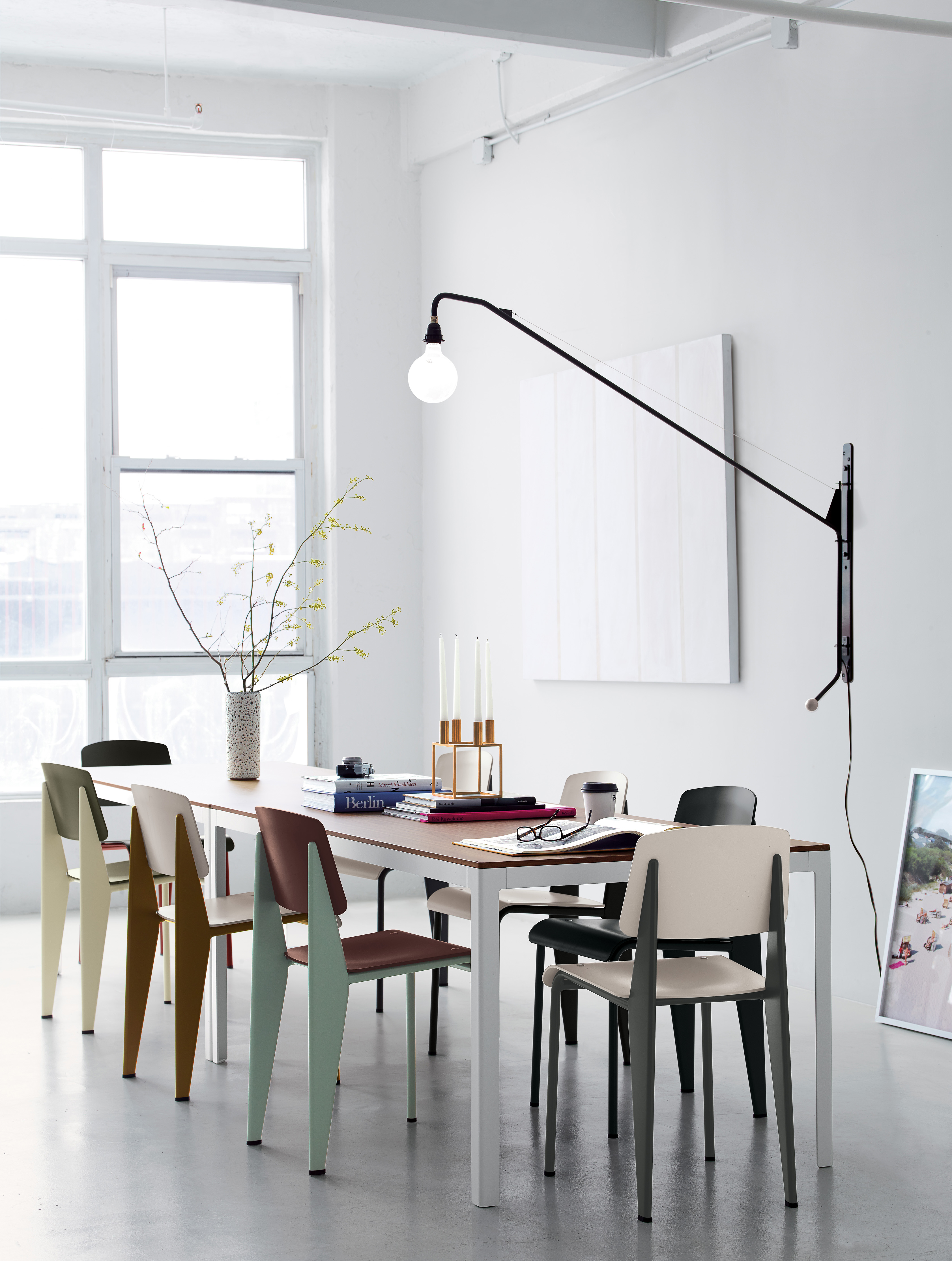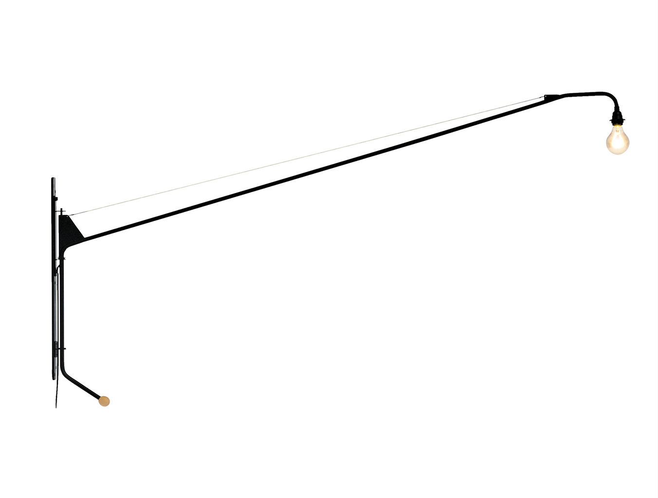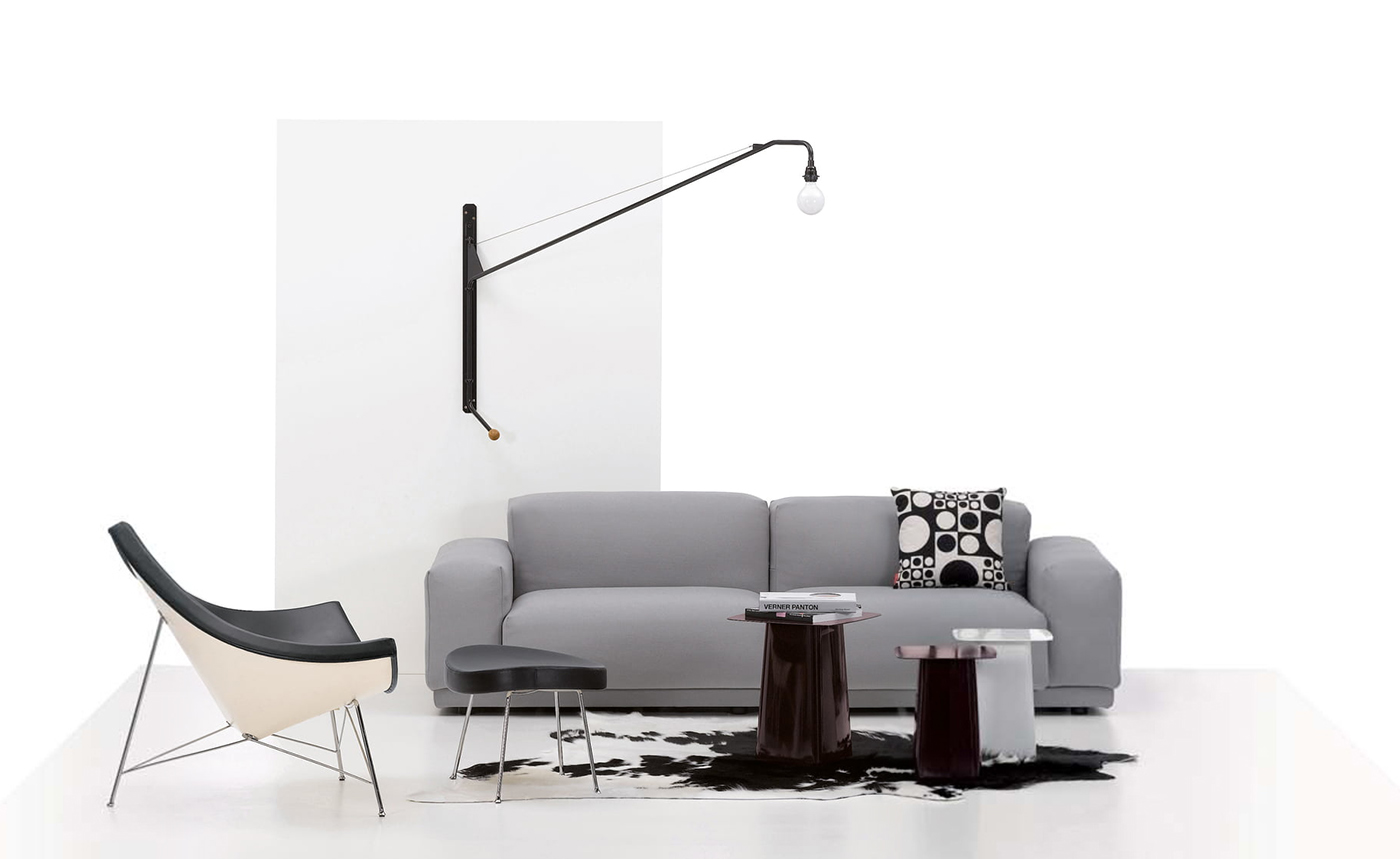 Potence壁灯是JeanProuvé的纯粹杰作之一。 减少了必需品 - 一个灯泡和一个旋转壁挂 - 长摆臂壁灯由粉末涂层管状钢制成,带有山毛榉木手柄。 灯由调光器控制,并配有灯泡。
