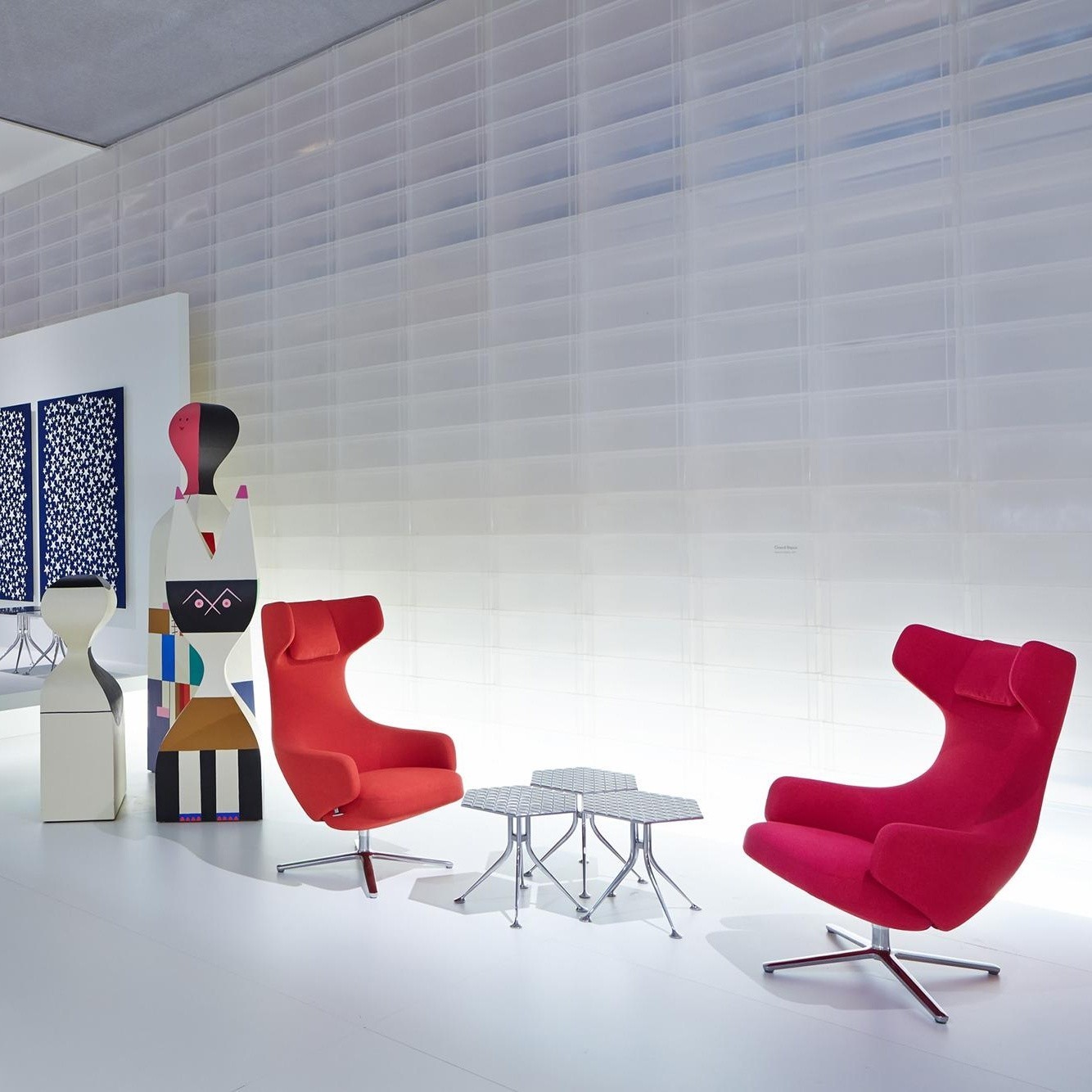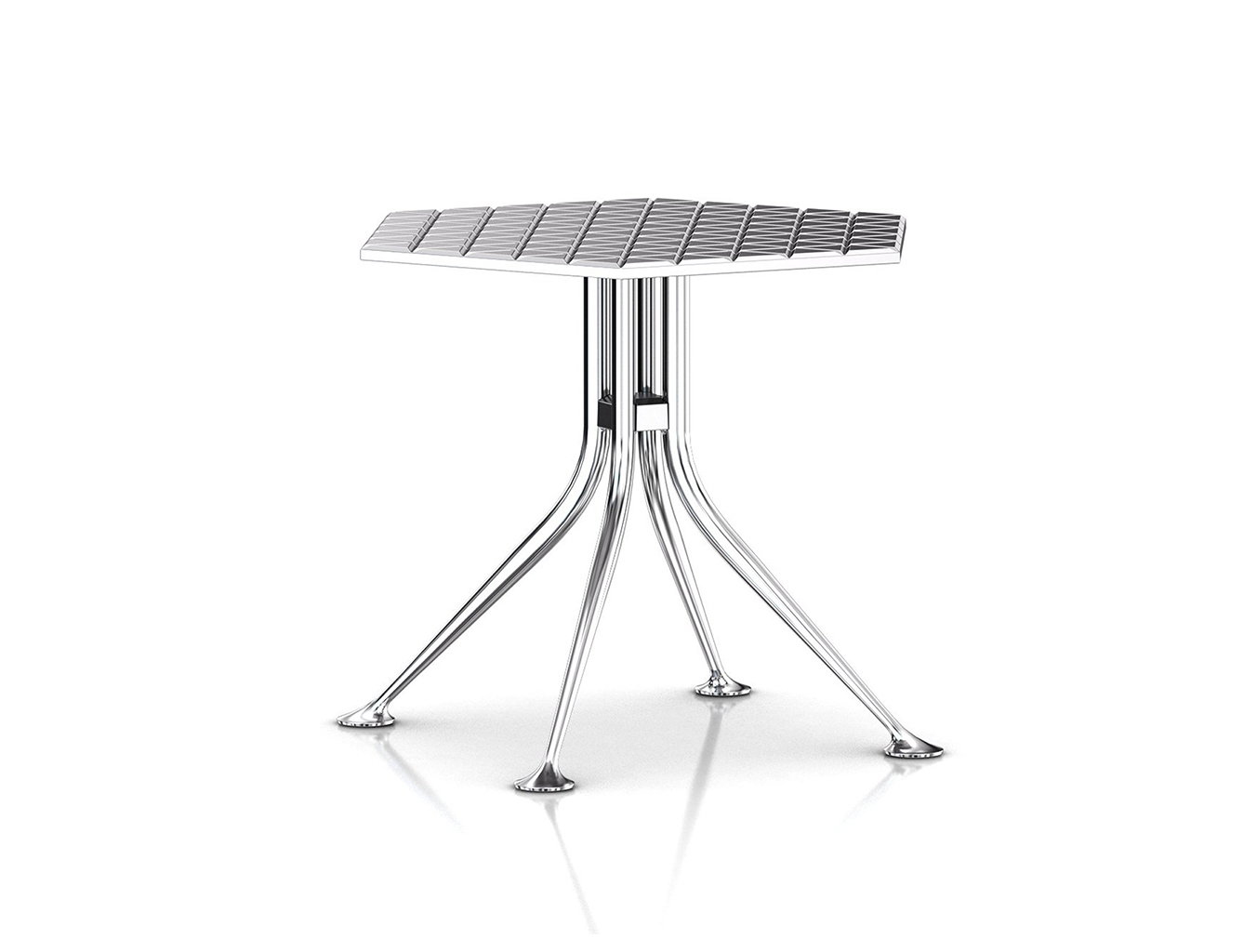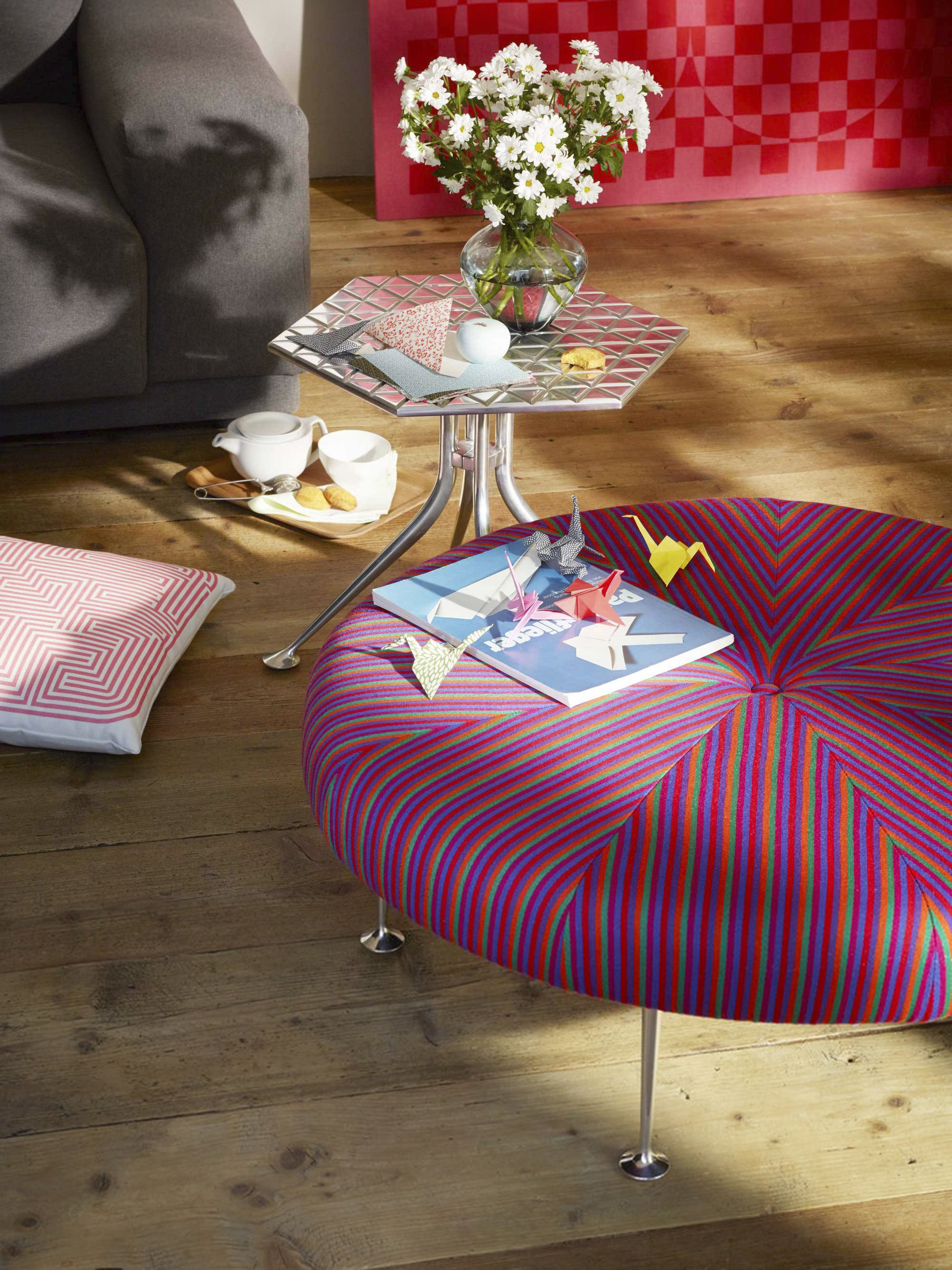 Girard被认为是面料、颜色、图案和纹理的大师级设计师。他的六角形桌子的铝制顶部刻有几何图案,在墙上的光线反射中可以看到。这种有趣的效果与Girard装饰性边桌的冷酷金属美学相得益彰。