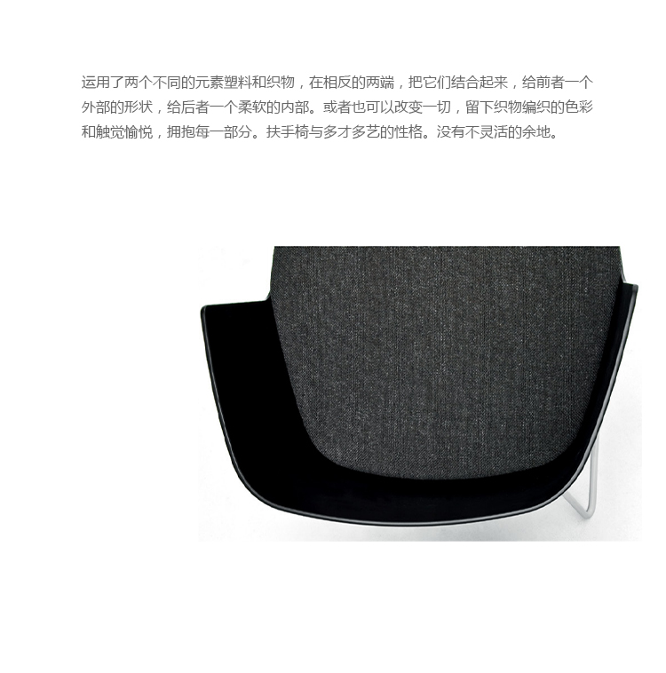 两个元素是足够的,在相反的两端,在塑料和织物。只要把它们结合起来,给前者一个外部的形状,给后者一个柔软的内部。或者你可以改变一切,留下织物编织的色彩和触觉愉悦,拥抱每一部分。只要选择从无数的组合,你已经削减,扶手椅与多才多艺的性格。没有不灵活的余地。