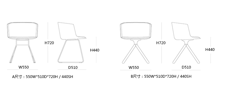 CUT洽谈椅/餐椅 系列尺寸/示意图