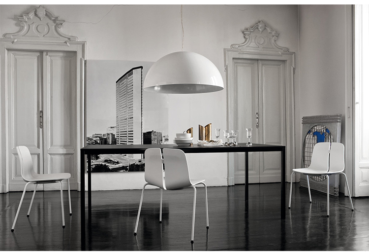 一个很小的间隙,一条线的中断,和连接的凳子形状。它是轻的,就像它狭窄的金属底座和木质座椅所暗示的那样,轻轻弯曲形成靠背。在自然的木材版本,纹理加强了柔软的轮廓和拥抱像一个非常新鲜的叶子,突出其结构的轻盈性。