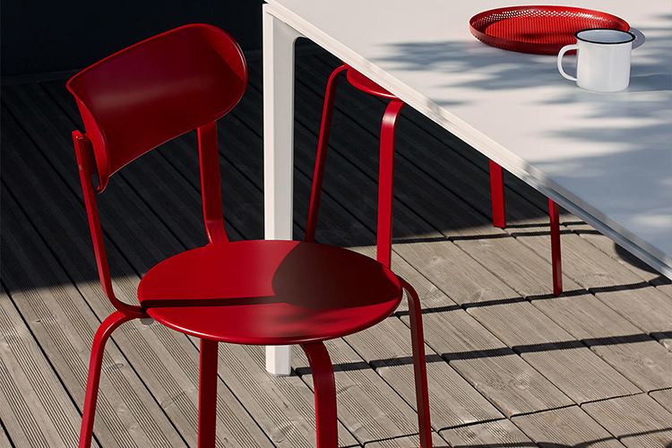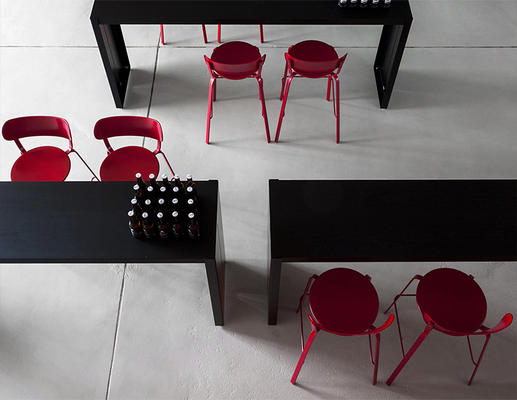 STIL,以其简单的线条,完全由涂漆的金属的,并通过标志性小酒馆椅子的启发,隐藏高度精制的细节,例如隐藏式接头和真正舒适的后弯。
