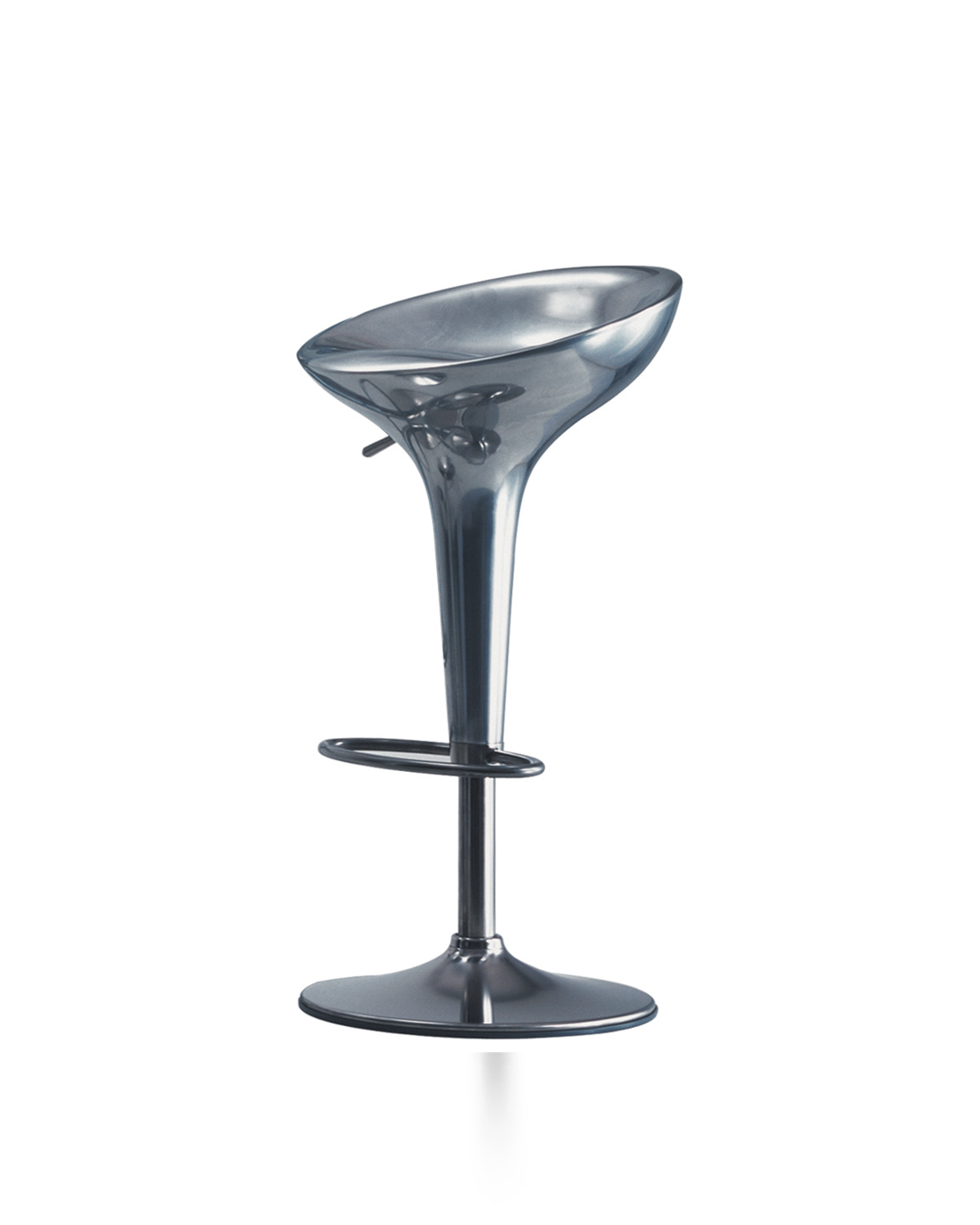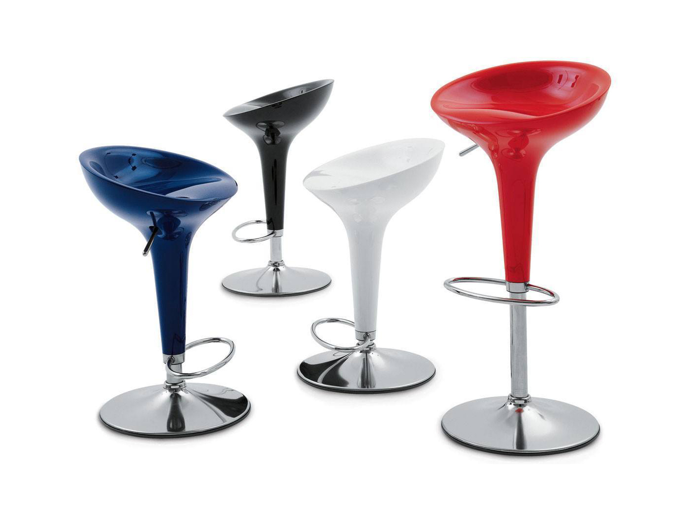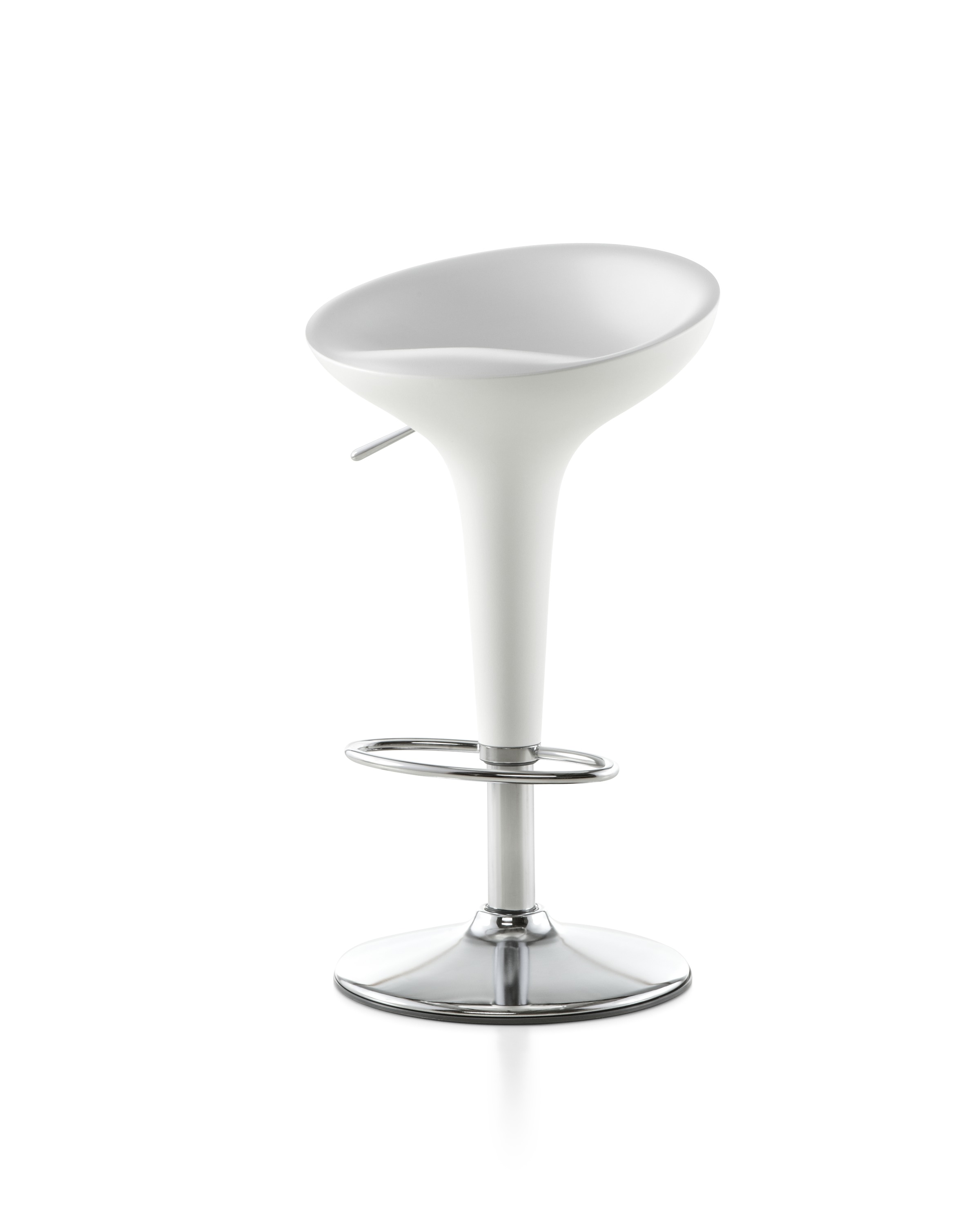 《星际迷航》(Star Trek)系列电视剧和电影《迷失太空》(Lost in Space)的片场都使用了这种未来感,最初的Bombo凳子改变了人们对凳子外观的看法。Stefano Giovannoni的华丽设计立即获得了评论界和商业上的成功。可提供一系列哑光色,座位旋转360度。