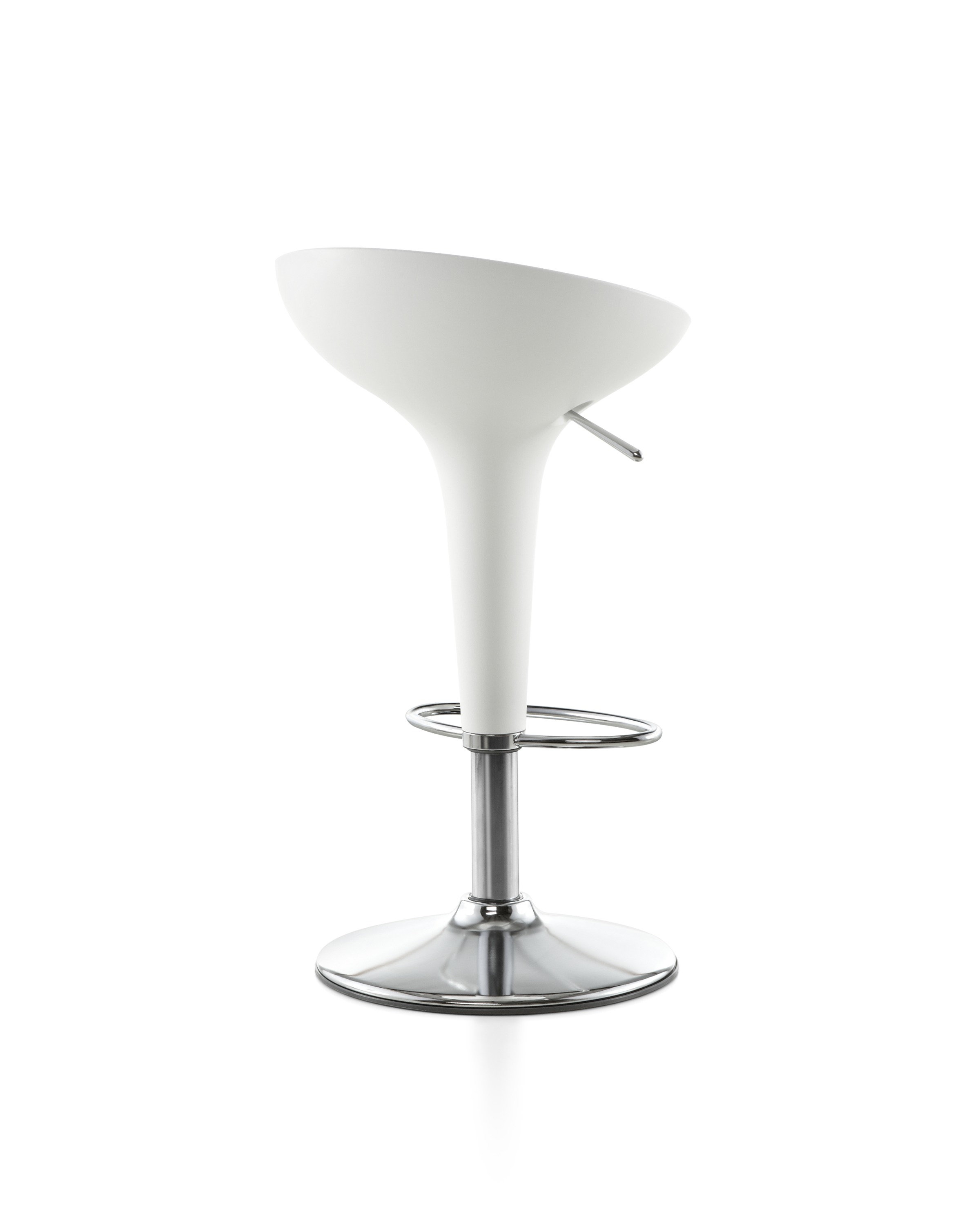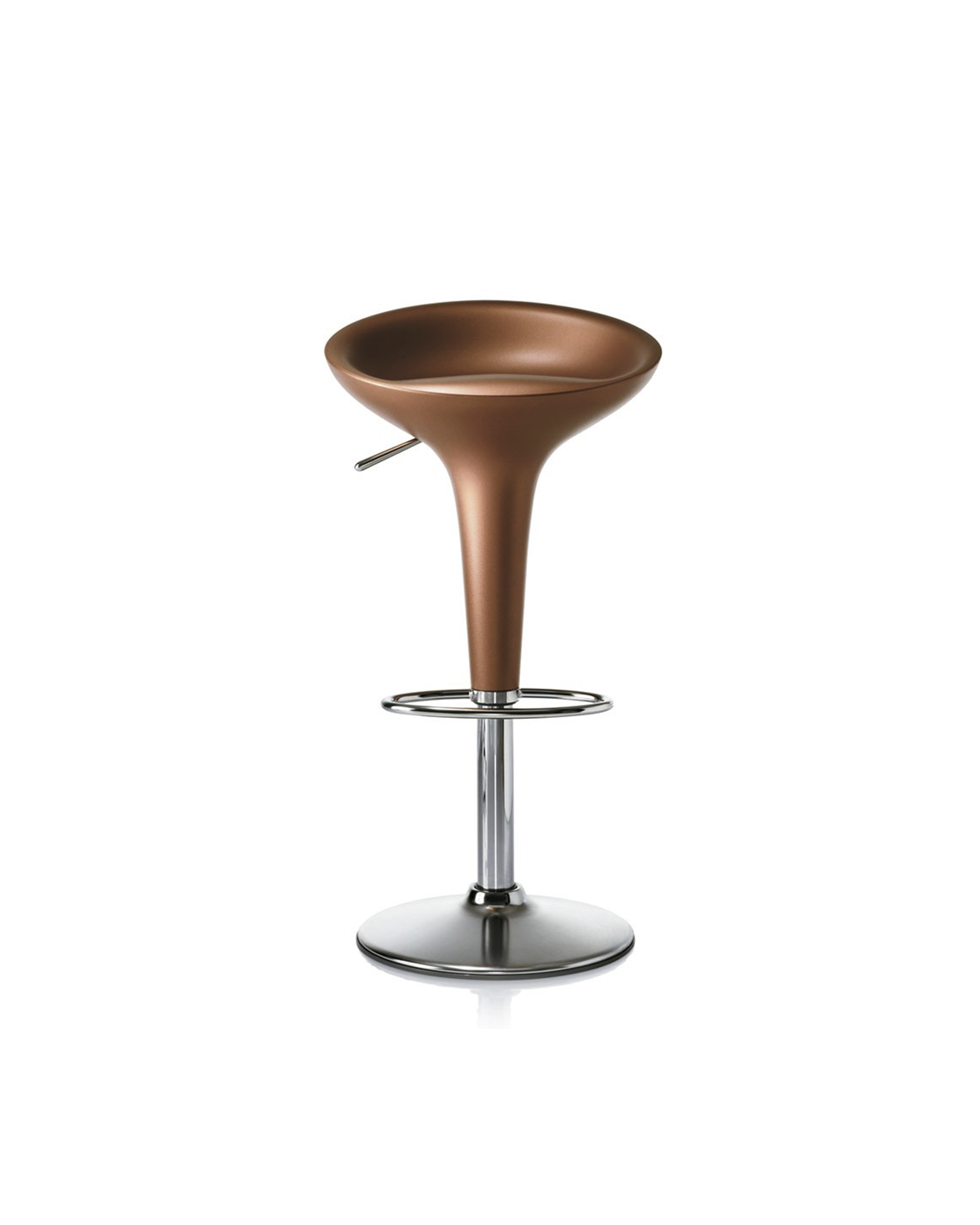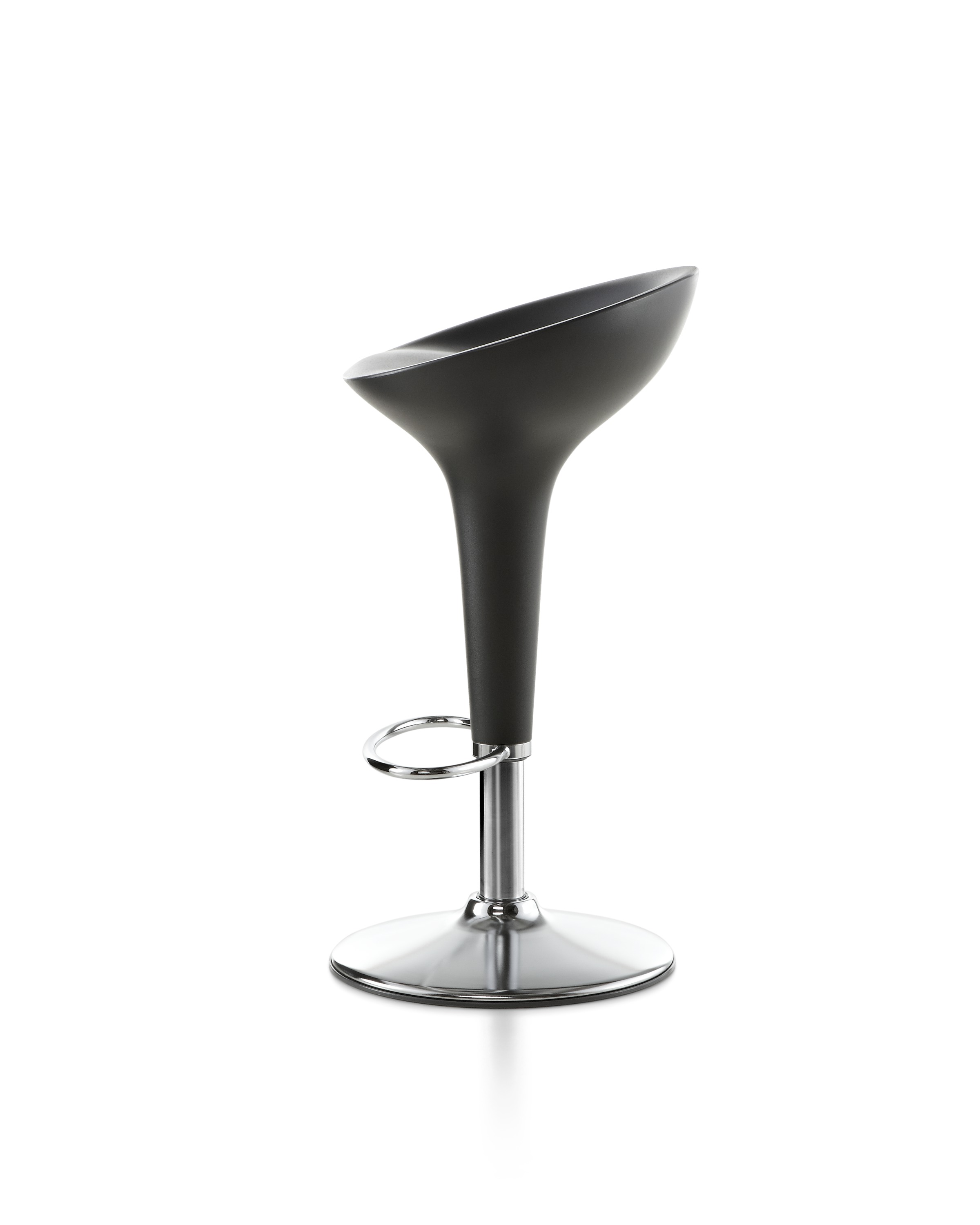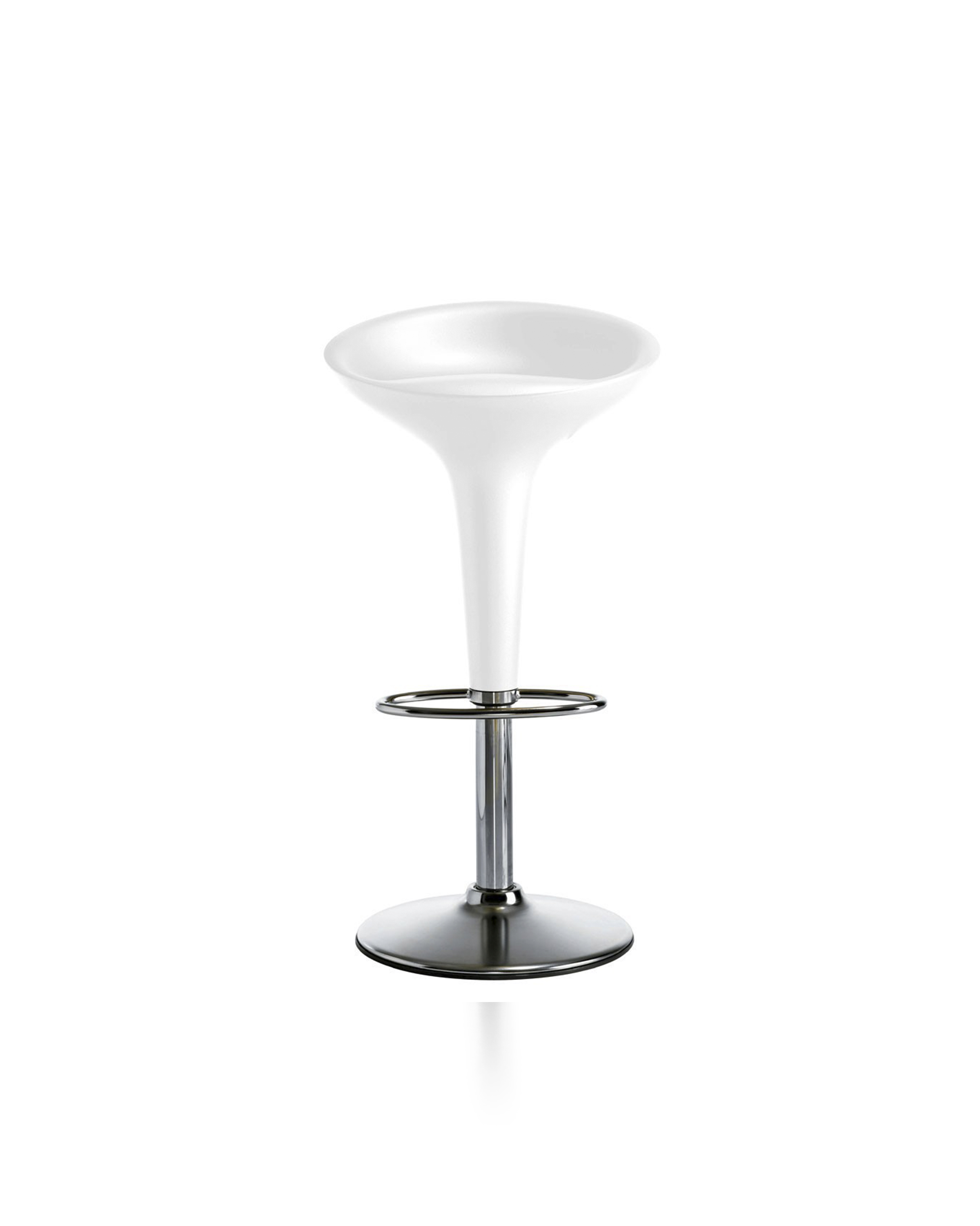 《星际迷航》(Star Trek)系列电视剧和电影《迷失太空》(Lost in Space)的片场都使用了这种未来感,最初的Bombo凳子改变了人们对凳子外观的看法。Stefano Giovannoni的华丽设计立即获得了评论界和商业上的成功。可提供一系列哑光色,座位旋转360度。