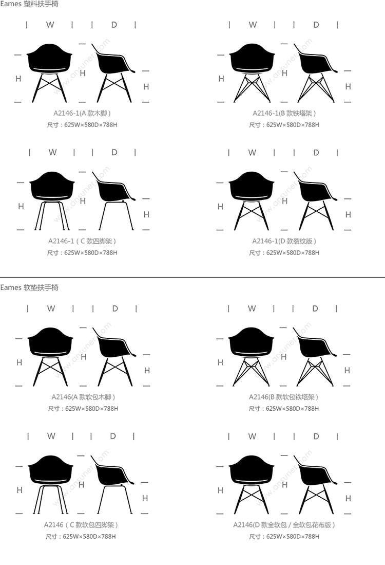 Eames® 系列尺寸/示意图