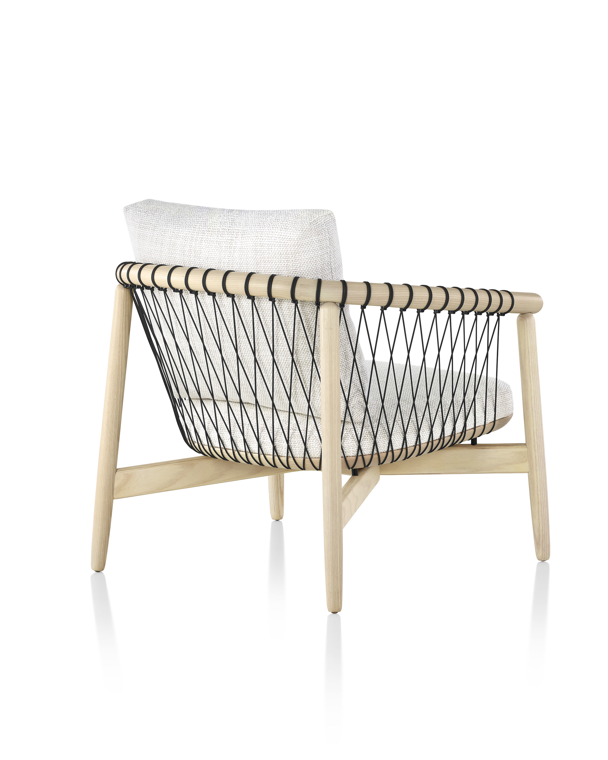 降落伞绳索,一种常见的工业产品,是其设计的一个组成部分。被拉下后,这些电线形成了一个内部张力系统,并提供必要的背部支撑,创造了一种被封闭在一个舒适的、保护性的鸟巢中的感觉。由于其简单、经典的外形,十字形座椅可以在各种环境下工作,从行政办公室或接待区到曼哈顿的顶层公寓或郊区客厅。