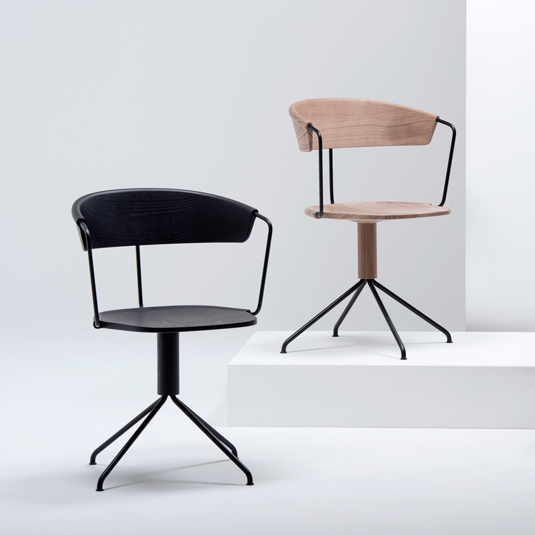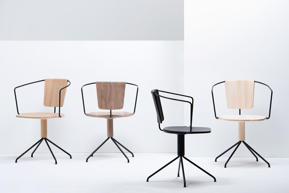 我们设想了一个木椅家庭与两个不同的靠背和一个(四星)旋转基地。