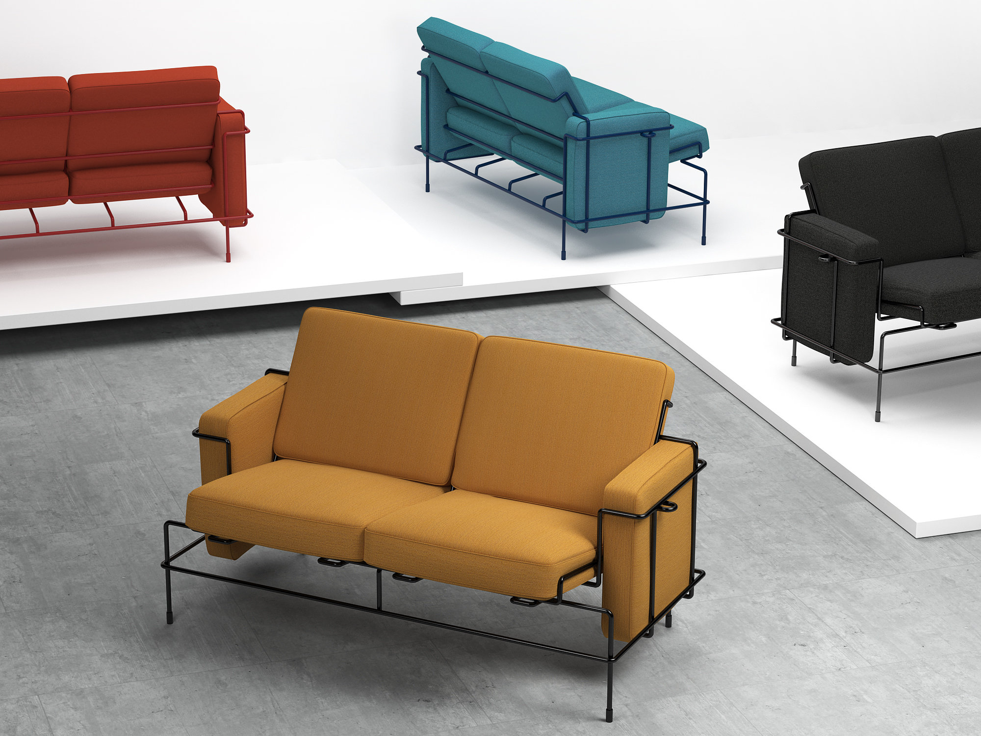 由Konstantin Grcic为Magis设计,休闲家具的交通系列提供了对比的研究:硬和软,线性和体积,俏皮和复杂。 钢制杆架具有平行和交叉线,为每个部件带来能量。 靠垫块,整齐地用布料或皮革装饰,传达出舒适和平静的感觉。