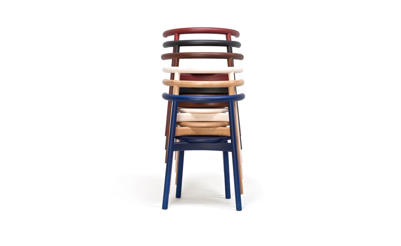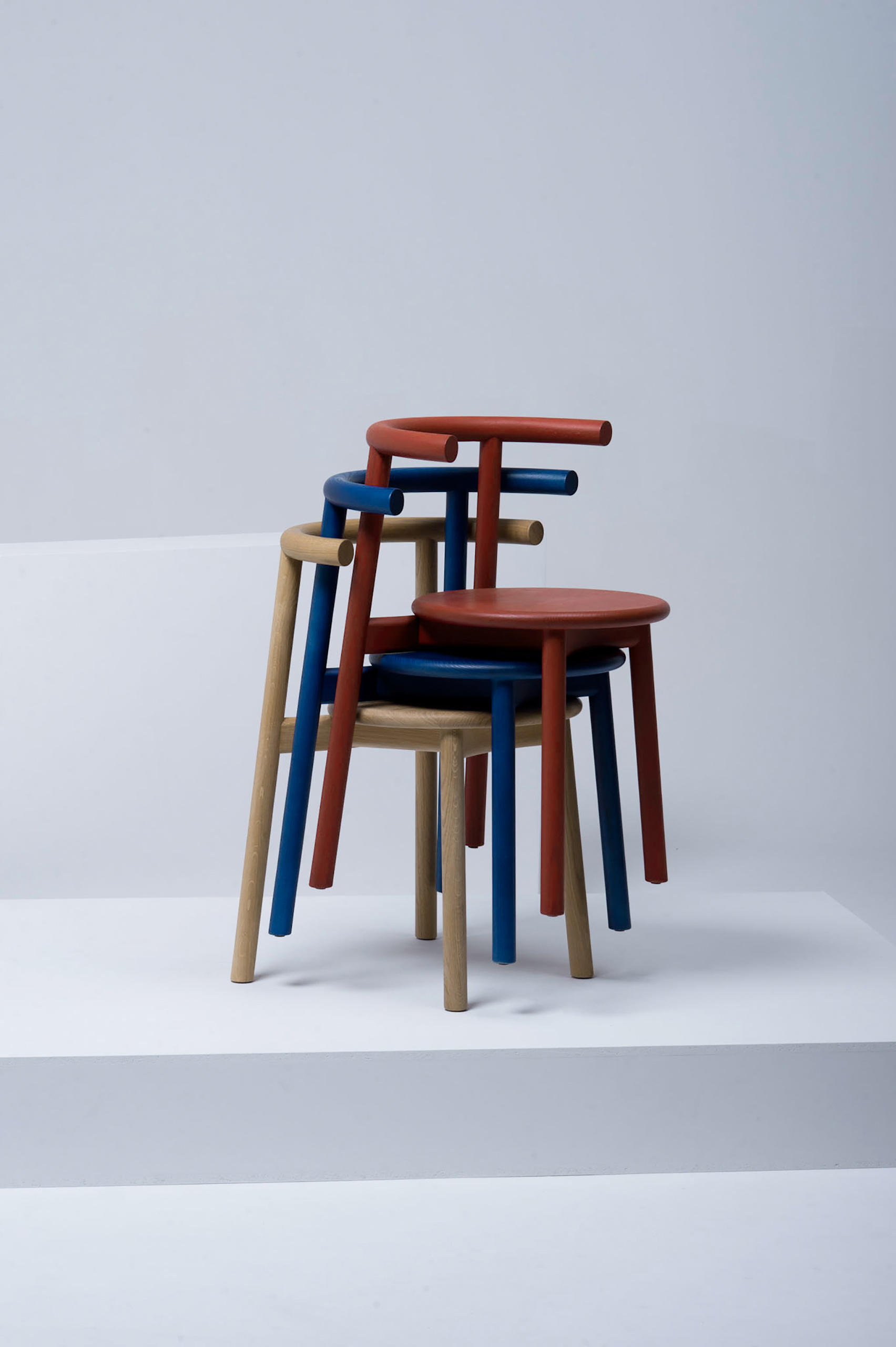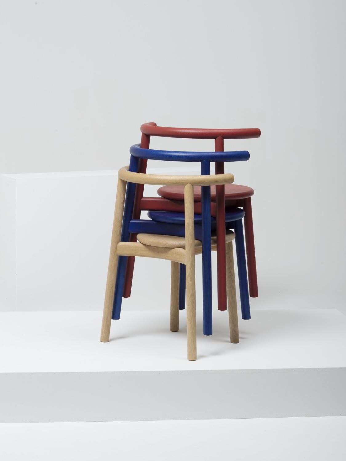 Solo Chair可在天然橡木和天然或漆灰木材。 椅子堆叠3个单位高。