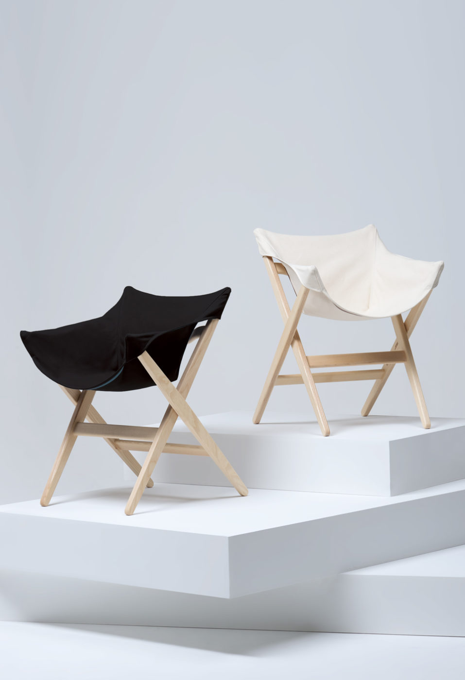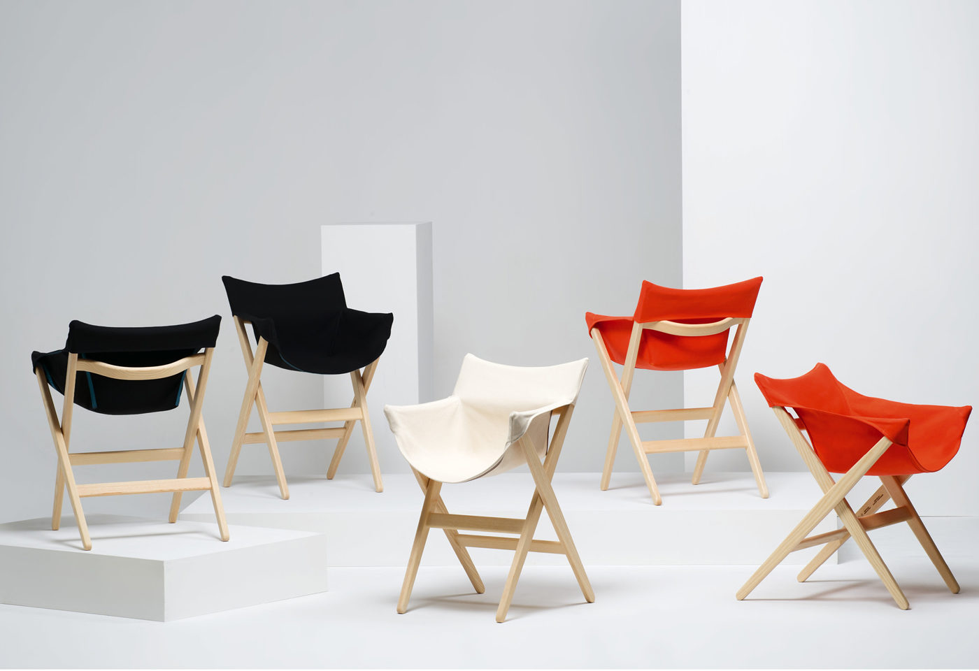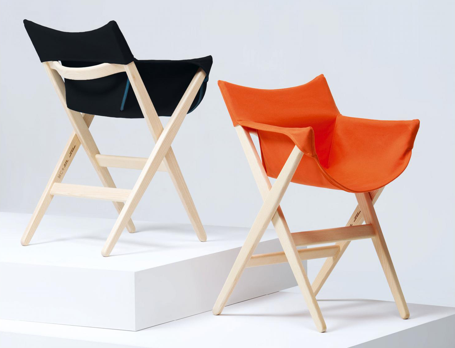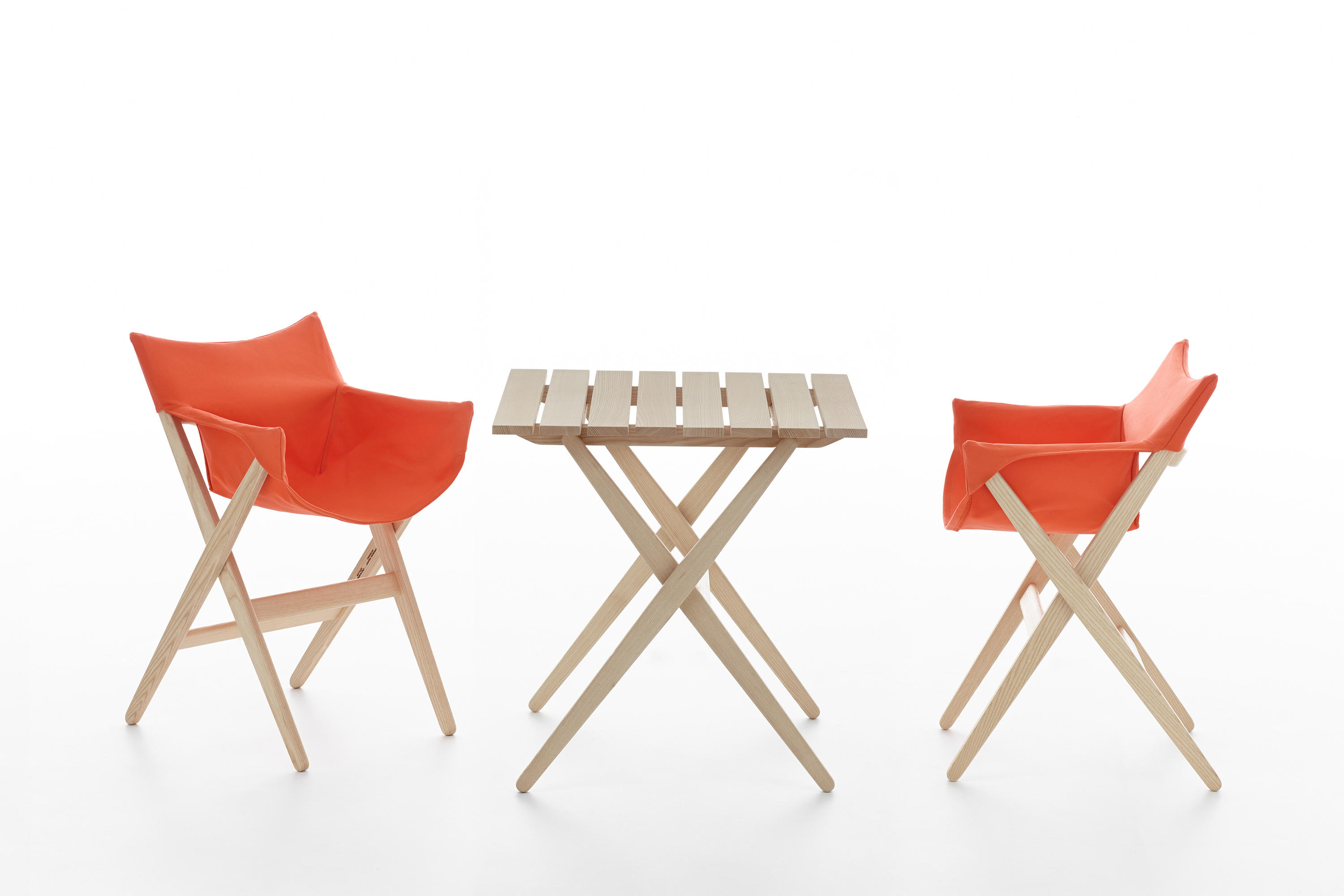 Fionda系列家具的特点是一个固体灰折叠框架与座椅制成