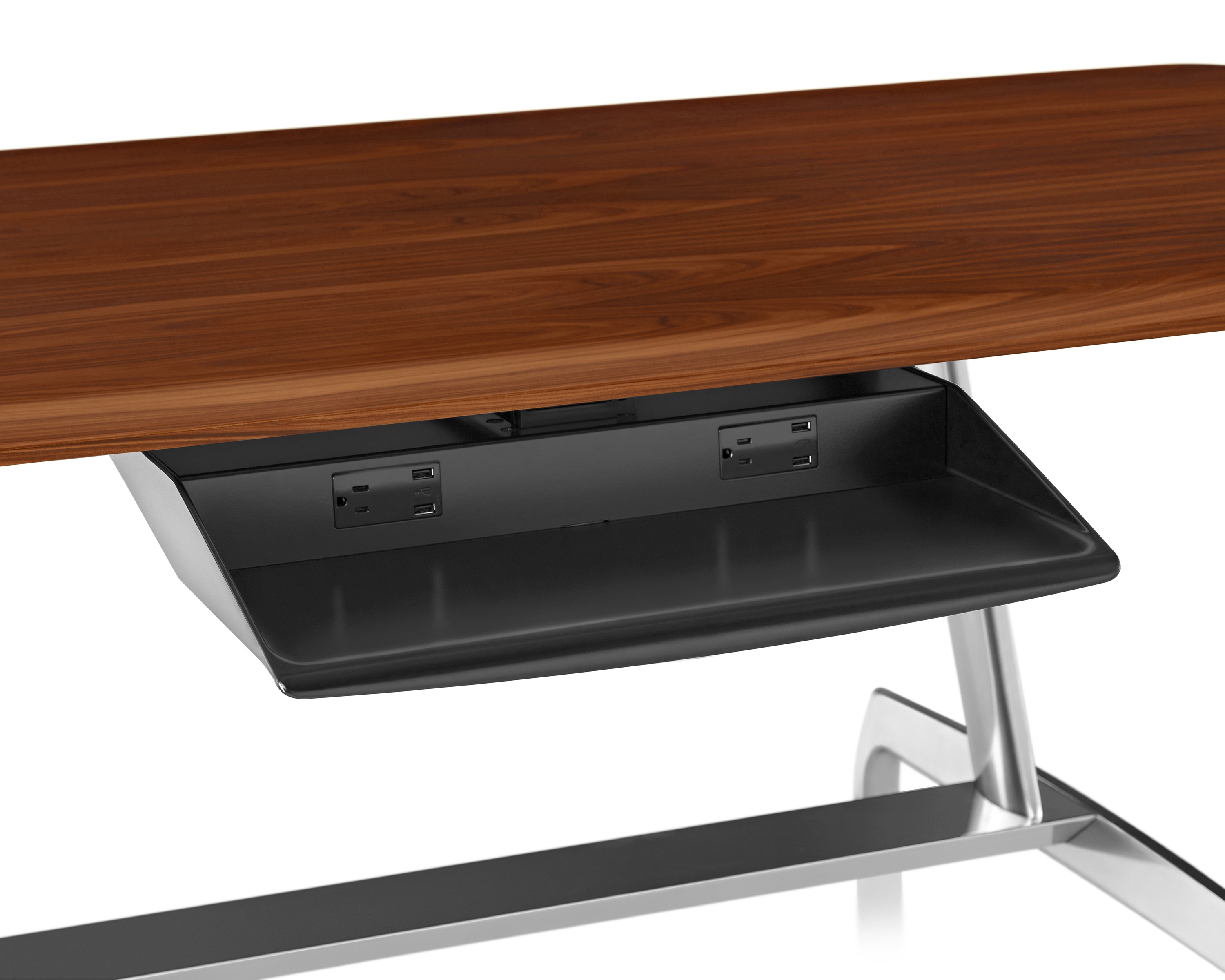 通过一项能够反映人与技术的互补联系的解决方案解决能源需求的问题。可选的托盘包括四个简单的插座,可以方便地从桌子底下拉出来,还可以在无损桌子的视觉整体性的前提下添加或拆除。AGL桌子系列有各种各样的尺寸和材质可供选择,无论应用到哪种场合,其优雅的外型都能与周围环境相得益彰。