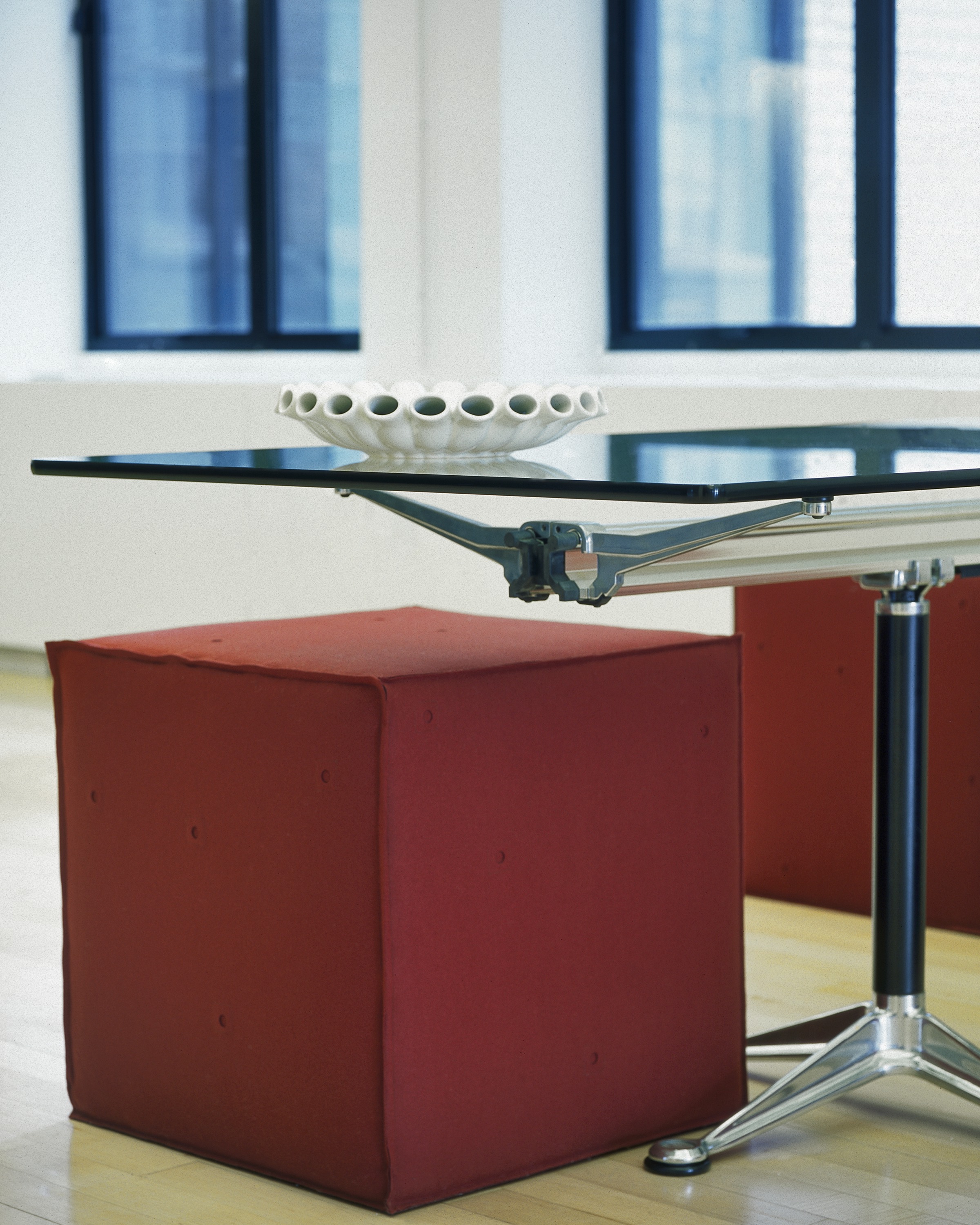 独特的中央铝制横梁使这款由Bruce Burdick设计的会议桌拥有出众的外观。这款精致的会议桌成套提供,也可以选配组件定制(包括玻璃或石制的两种顶面形状),外观与众不同,功能强大,适应性极佳。