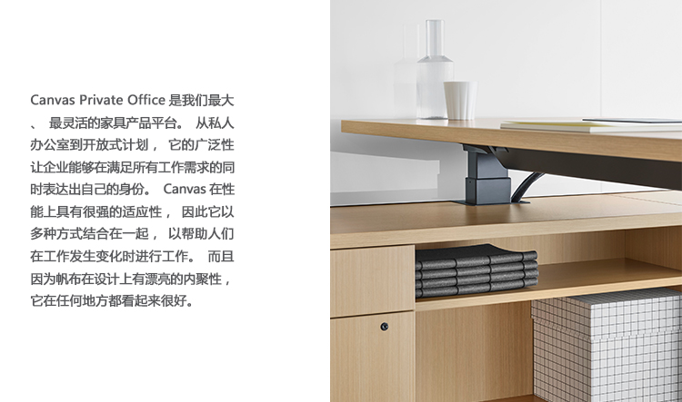 Canvas Private Office将Canvas Office Landscape的多功能性带入封闭空间。 为私人办公室设计的产品可以帮助人们高效地工作。 材料和尺寸的选择允许创造性的方式来提供空间 - 从传统到现代,为个人或小团体。 鉴于其产品线,Canvas Private Office产品可与Canvas平台上的任何产品配合使用,在办公室内保持一致的外观。