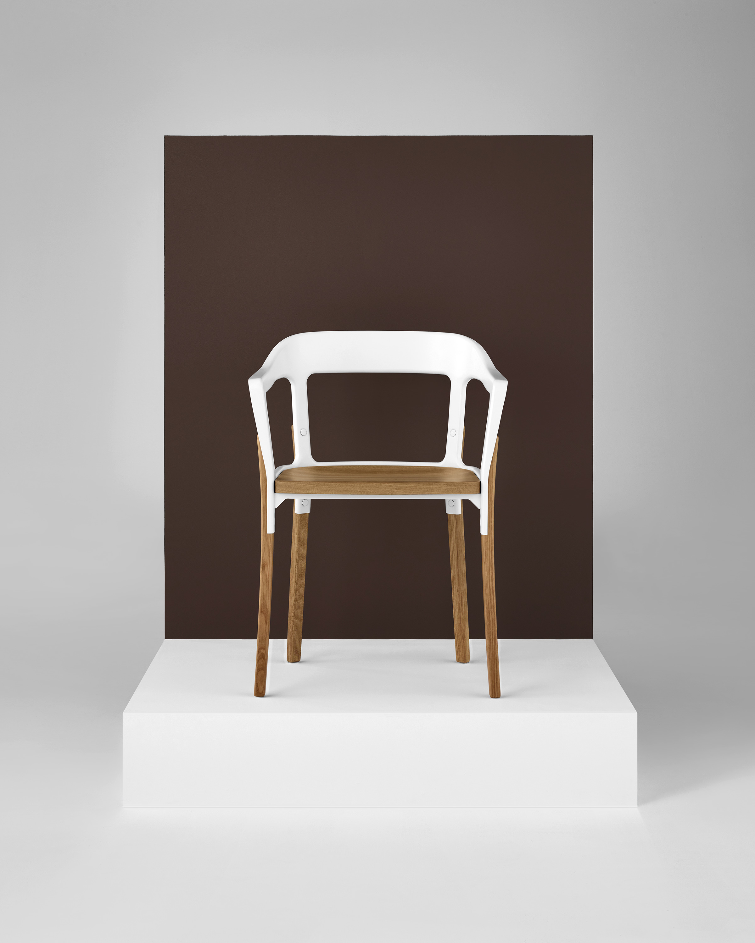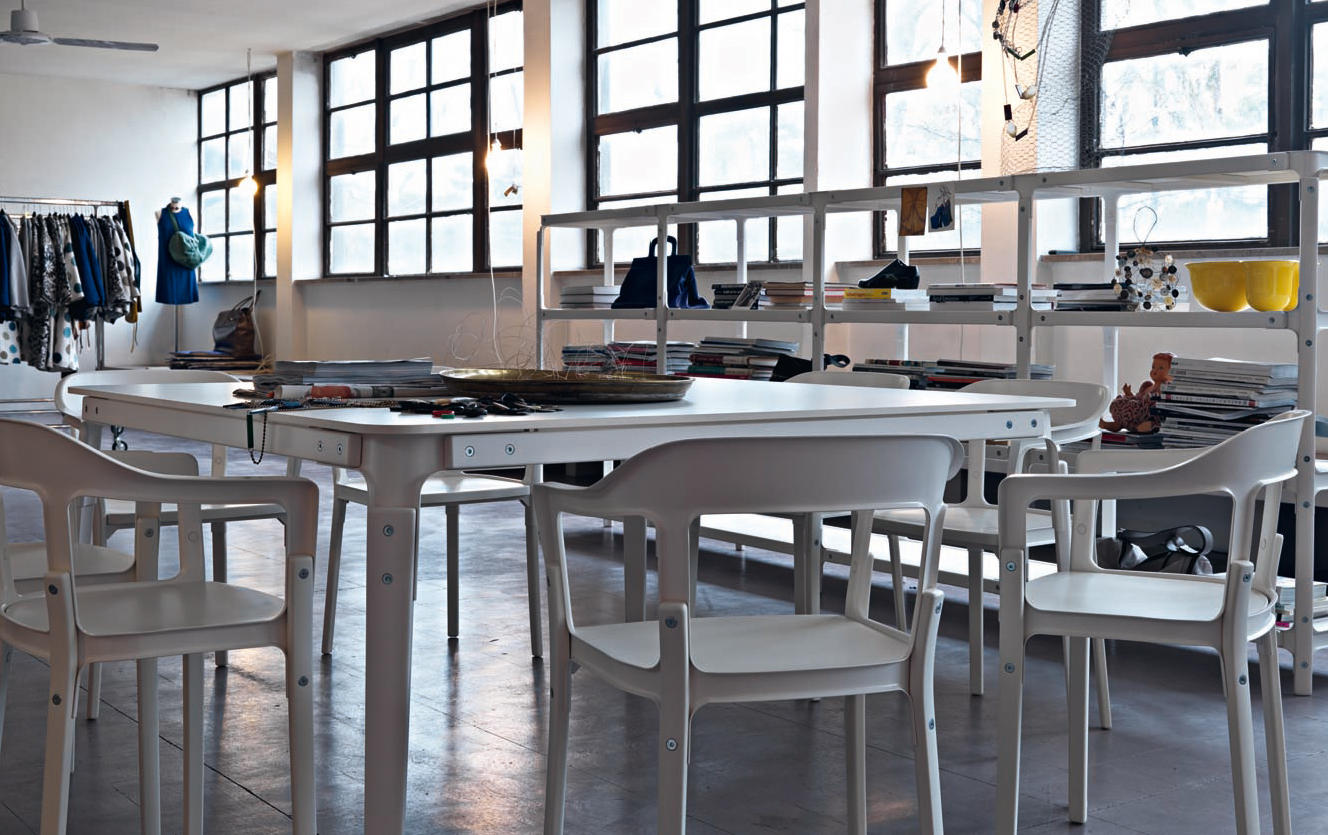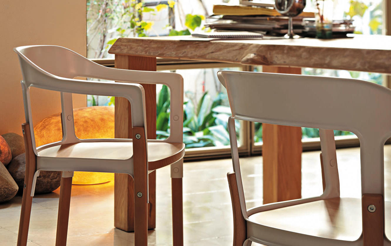 Ronan和Erwan Bouroullec称他们的Steelwood椅子“稳定、民主、普遍、持久”。“设计巧妙地结合了两种传统材料,木材和钢材(涂漆和镀锌版本)来传达温暖和力量。”这种组合有助于休闲或优雅的设置和选择的软垫座椅提供额外的舒适。