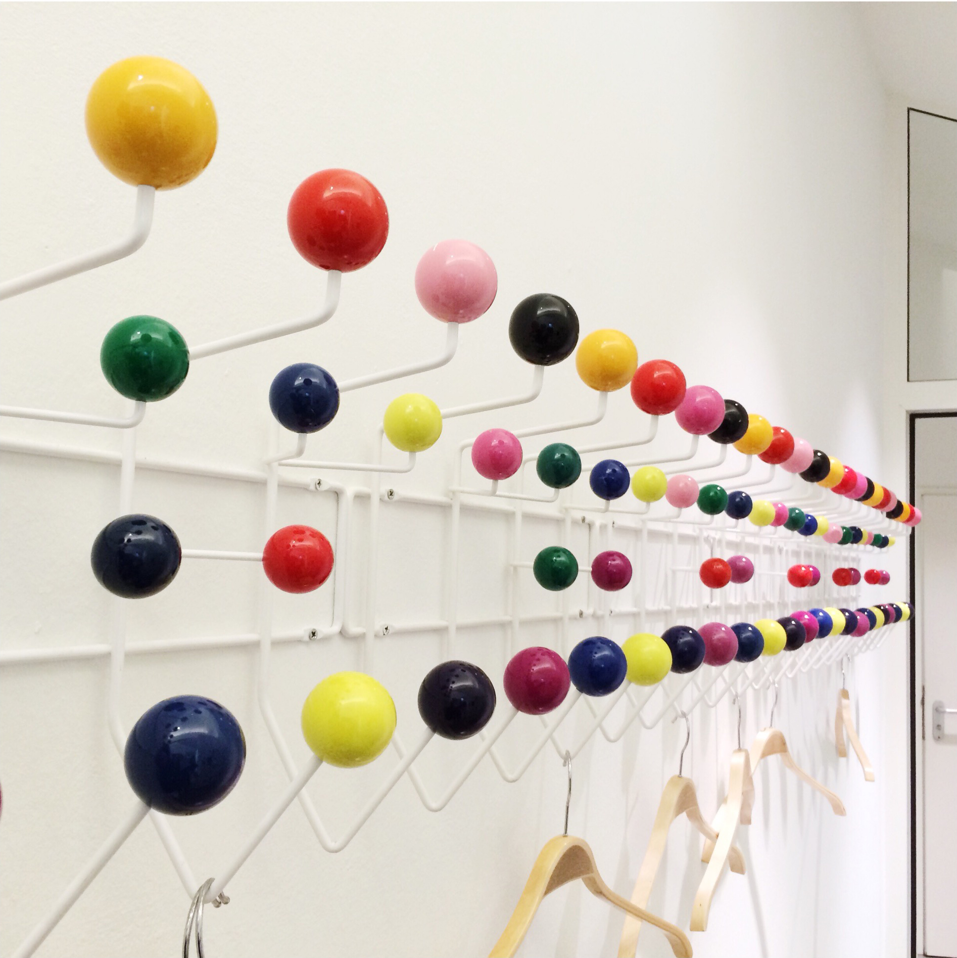 查尔斯和雷·埃姆斯把他们的衣架全部挂起来,把日常的衣架提升到一种创造性和趣味性。最初是用多色的挂钩和白色的金属线框制作而成,从那以后,它的材质和配色都更加忠实于原作的复杂和玩味。