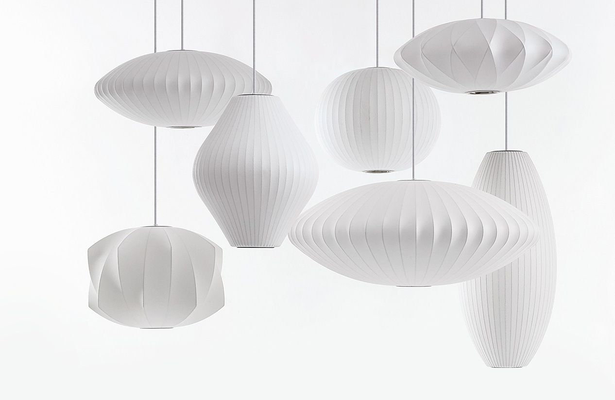 Nelson气泡灯具有迷人的球状轮廓,能为室内设计增添一缕温婉柔美的光彩。球形气泡吊灯可提供三种尺寸,其浑圆的球形部分通过一根6英尺的吊绳悬挂在吊线板上。气泡灯最早设计于1952年,当时Nelson被一组瑞典吊灯深深吸引。其令人望而生畏的高昂价格让Nelson当即就想要设计自己的作品,但通过某种方式让这些灯更加经济实惠。其结果是一系列灯具的面世,这些灯具以一些自然的球状外形为特色,比如圆圆的苹果、加长的雪茄和造型优美的梨等。