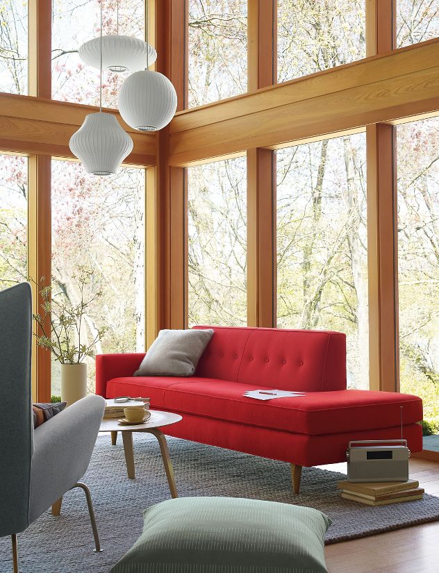 在基本的球状外形基础上稍作改变,气泡灯系列是George Nelson的设计中辨识度最高、最经典的系列之一。Nelson Pear Bubble Pendant梨形气泡吊灯悠然悬挂在头顶,向中心部位发散耀眼的光芒。本款吊灯有两种尺寸:小号和中号。1952年,美国市场引进了一款瑞典吊灯系列产品,George Nelson对此十分心仪,想要给自己的办公室买一套。那盏灯的价格在当时来讲实在过于高昂,让人望而却步,但却让他萌生出自行设计的念头来。其结果是一系列灯具的面世,这些灯具以一些自然的球状外形为特色,比如圆圆的苹果、加长的雪茄和造型优美的梨等。