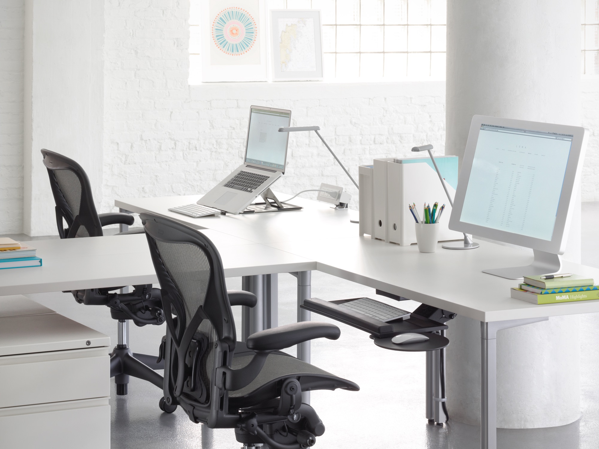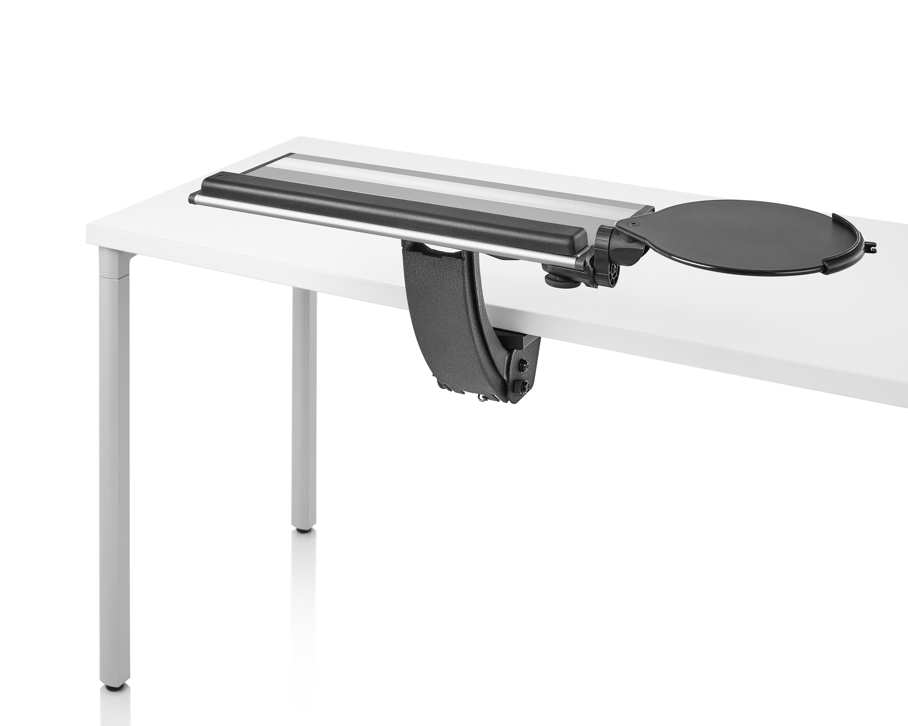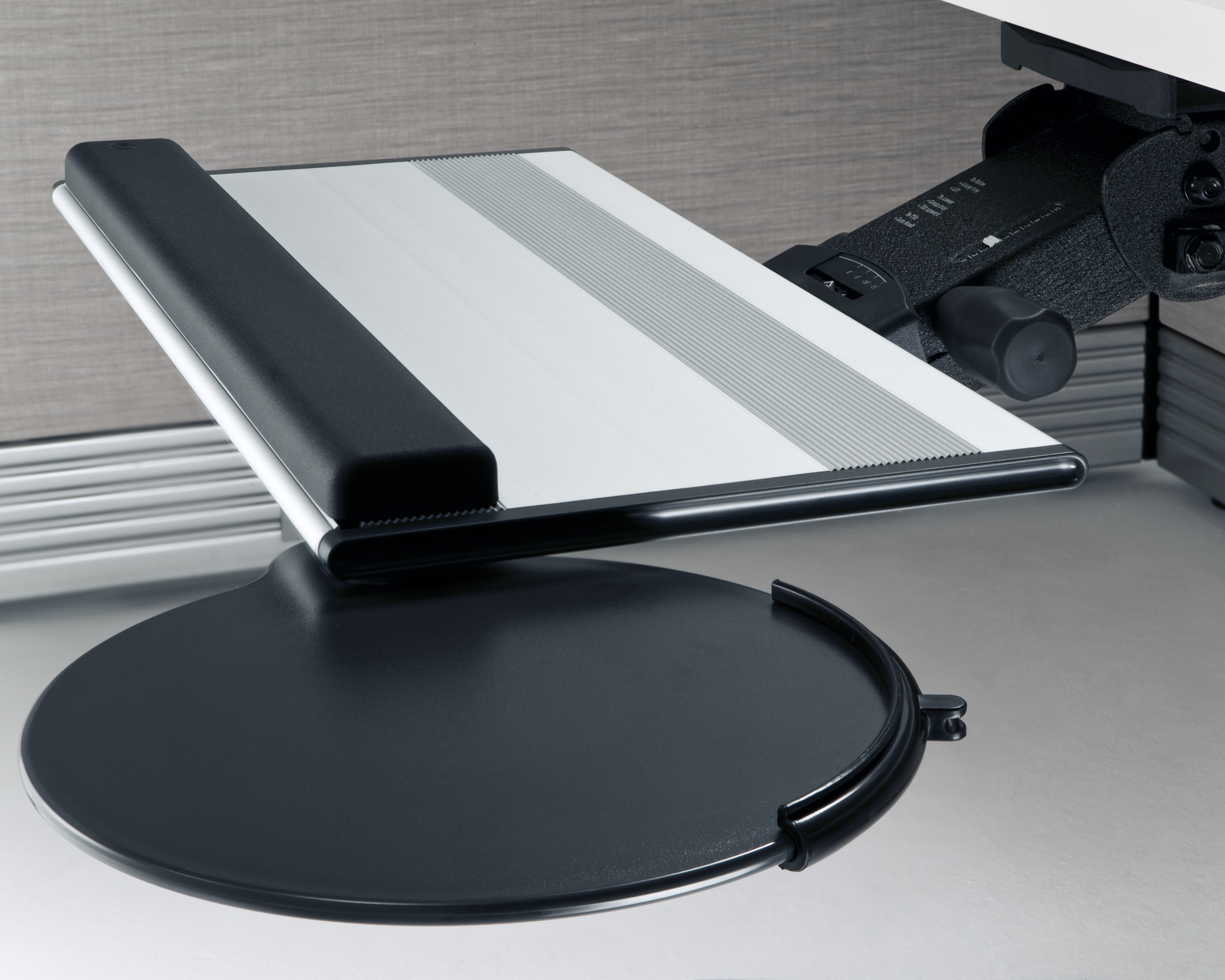为了像你一样努力工作,我们的键盘支持连接到工作表面的底部,使你的键盘表面在适和你身体定位的高度和角度。高度和倾斜的调整范围很广,确保了所有人和家具的健康位置。当你需要打字的时候,机械装置就会伸出来,当你不使用时,机械装置就在工作表面下整齐的储存