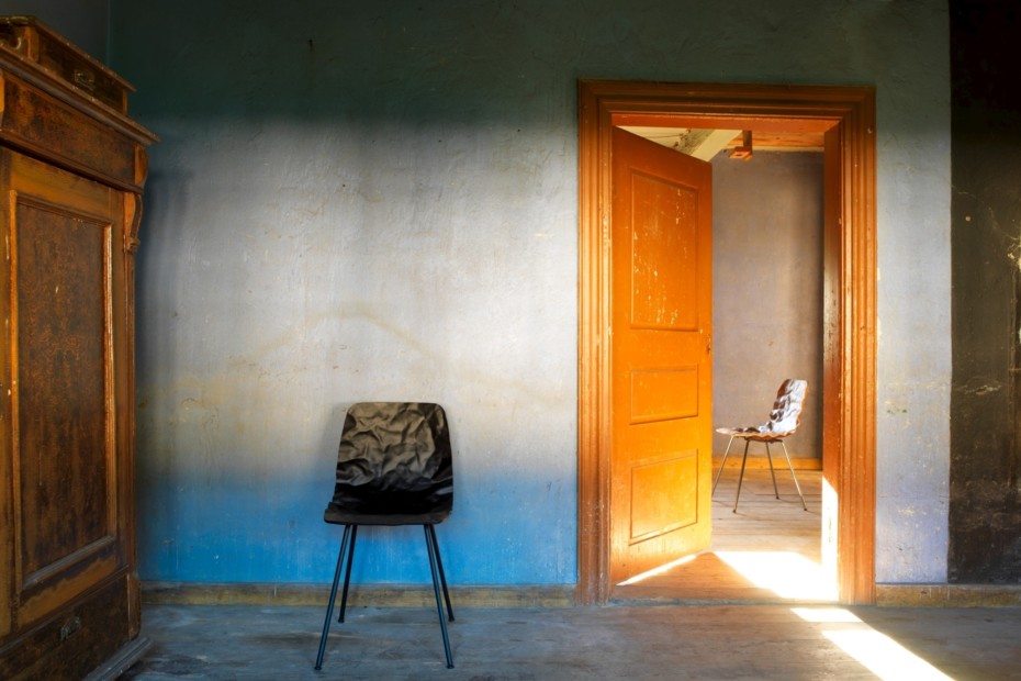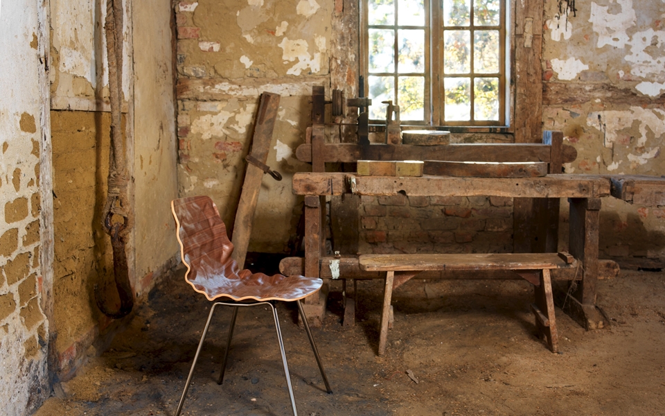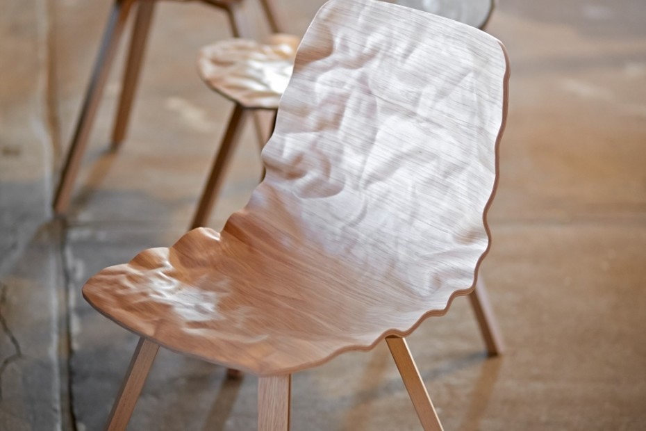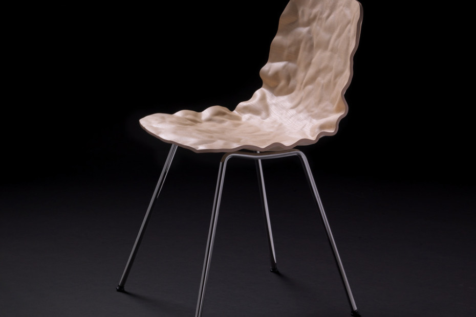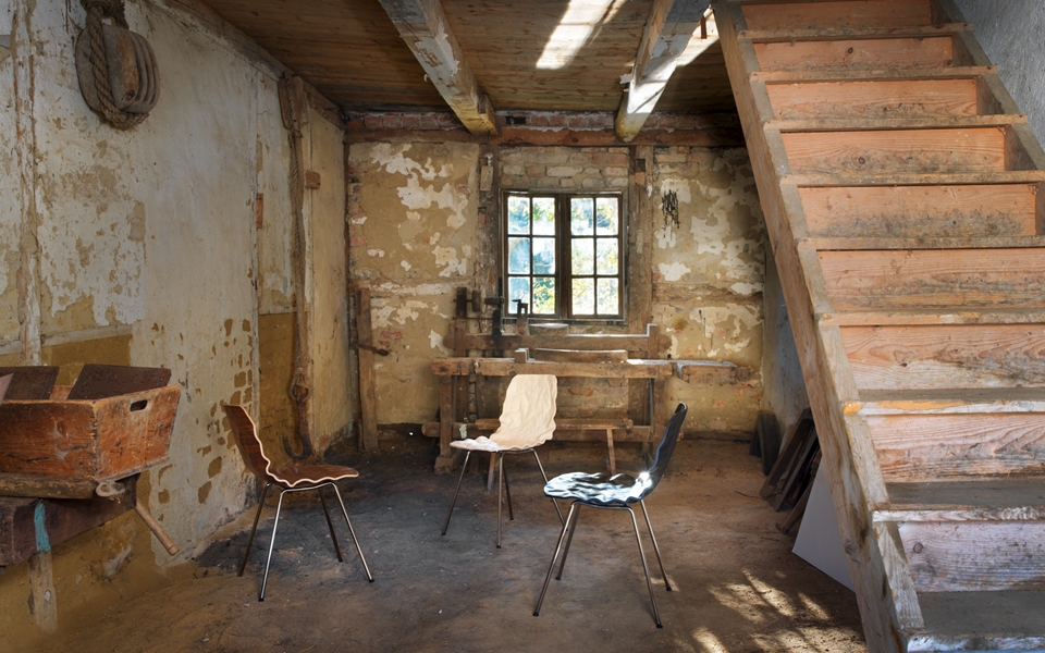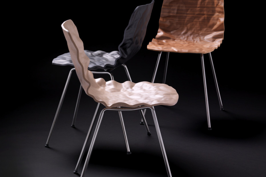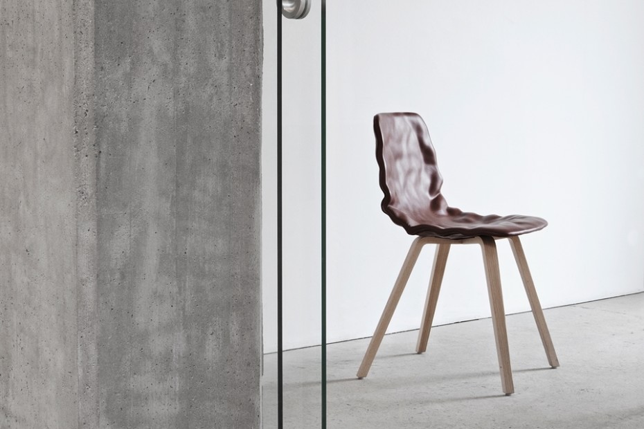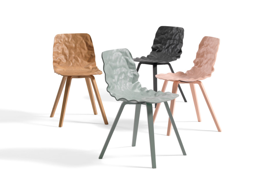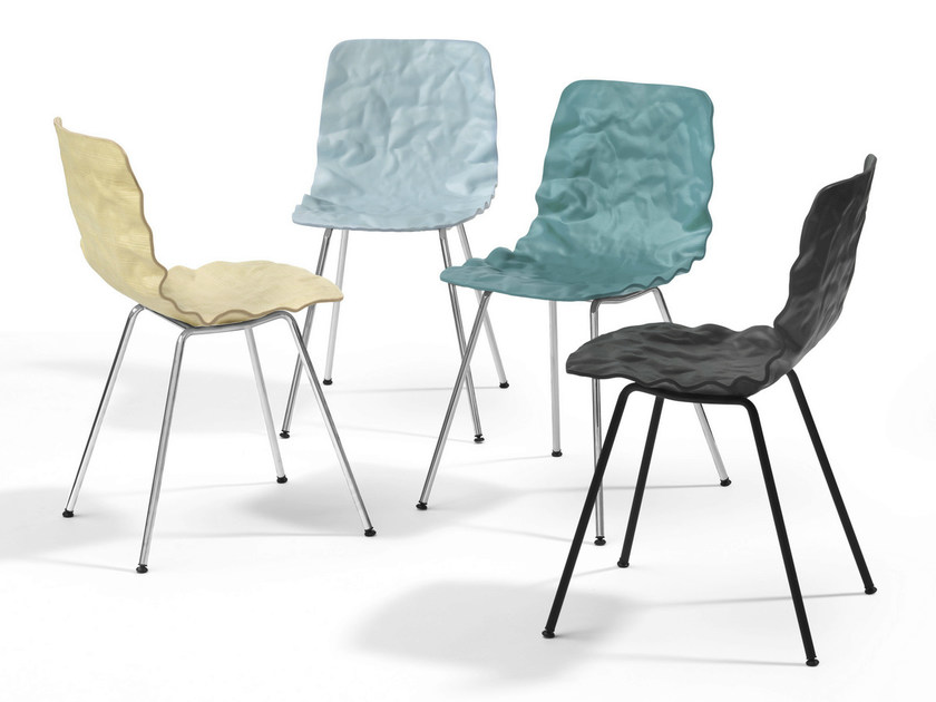 旋转椅在层胶压缩成型白蜡木。制成的普通(未3D)单板彩色的或天然的涂漆了绿色铬,铬III或上漆的钢。