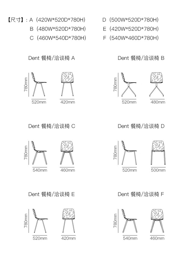 Dent 餐椅/洽谈椅 系列尺寸/示意图