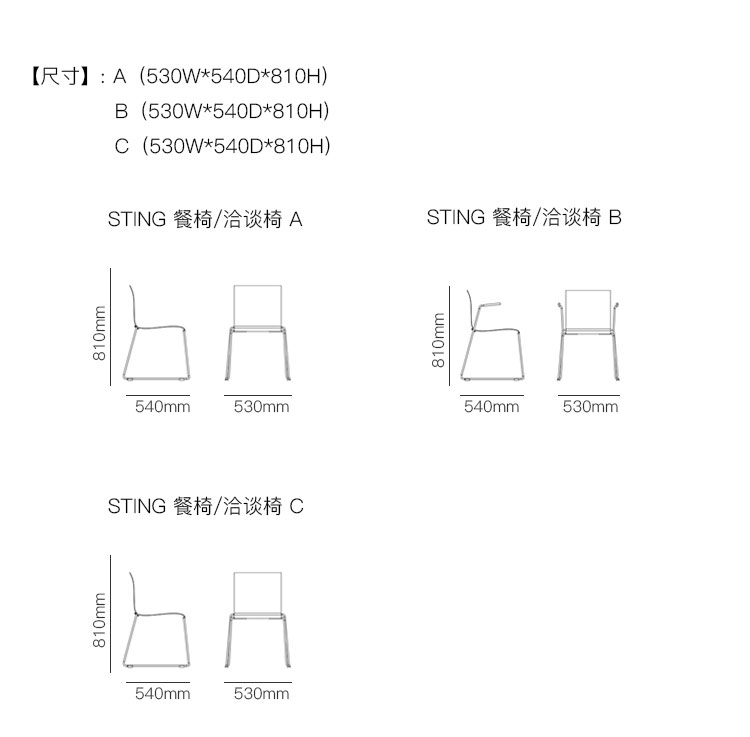 STING 餐椅/洽谈椅 系列尺寸/示意图