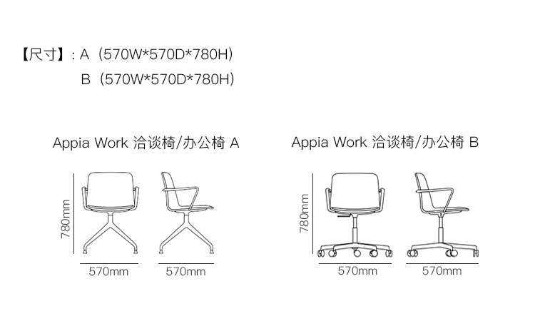 Appia Work 洽谈椅/办公椅 系列尺寸/示意图