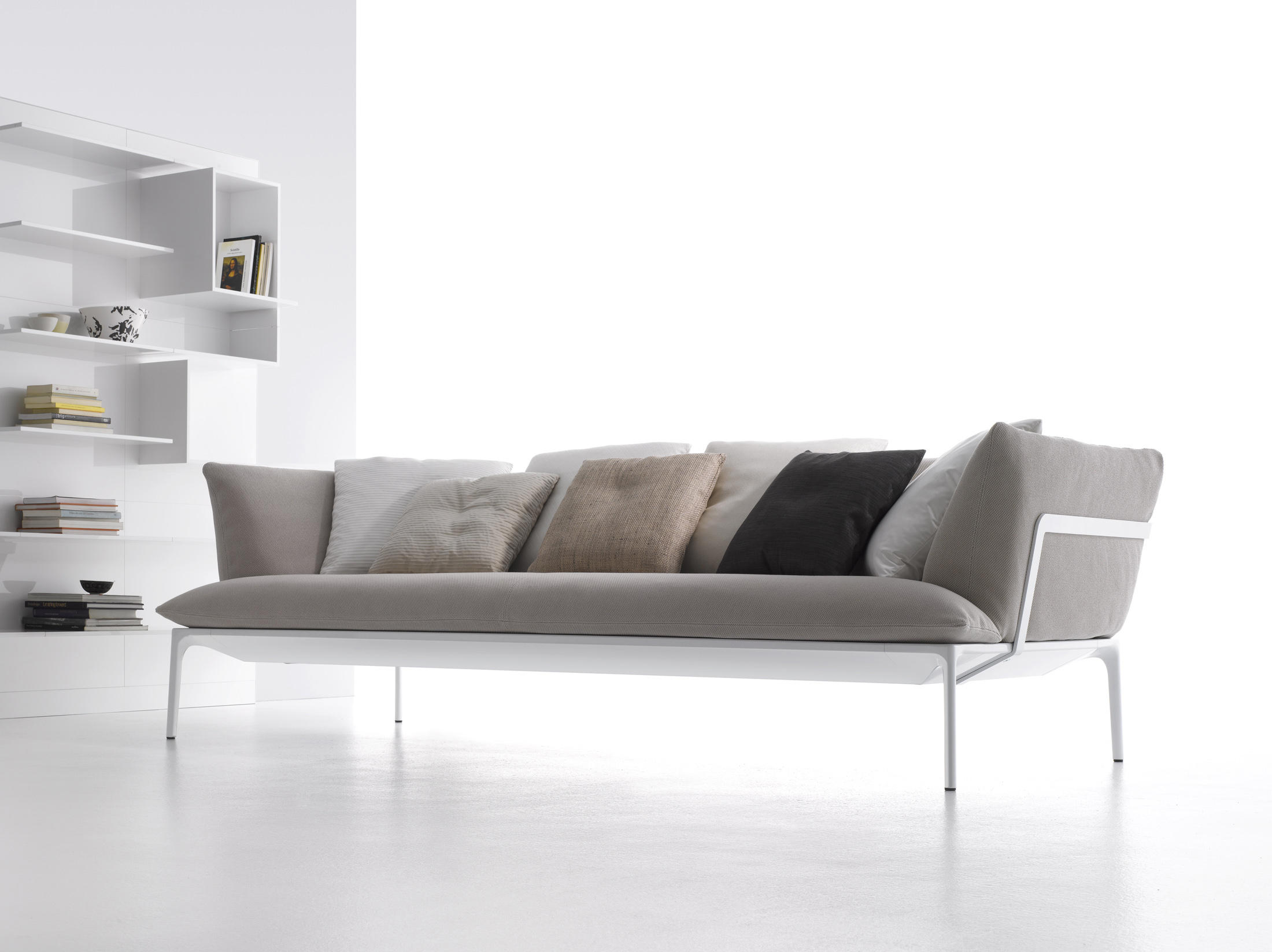 具有强烈个性和宽大靠垫的扶手椅和沙发,可提供出色的舒适性和出色的功能性。提供两种不同的座椅深度和两种不同的靠背高度,可确保舒适的坐姿并能适应当下的需求。 靠垫 靠背和扶手与管状铝和用于紧固到简档特定系统内部承重结构。可变密度泡沫聚氨酯填充和盖在罗洛梅Fill®(聚酯微球体)和聚酯软填料。这种特殊的组合物衬垫使填充自然柔软性和弹性,长寿命和高舒适性。 坐垫与topstitched接缝和凸起轮廓。 帧 。挤压铝框用松紧带,铝压铸件英尺框架漆成白色亚光,石灰色和无烟煤灰色。 蒲团 该系列包括三个新车型蒲团:L75xD75,L150xD75和L150xD44与框架H30厘米,总是在相同的光洁度作为沙发, 盖 在织物或皮革的内饰覆盖了沙发的每一个部分,是完全可拆卸的。 如果需要,可选的附加盖是可用的。在皮革所有单位都有,根据其大小,并在意大利MDF的自由裁量权,一个或多个接缝。 煤层 这些对比鲜明的接缝仅针对高靠背款式来表征和识别Yale X系列。有白色,中灰色和无烟煤色可供客户选择和组合。