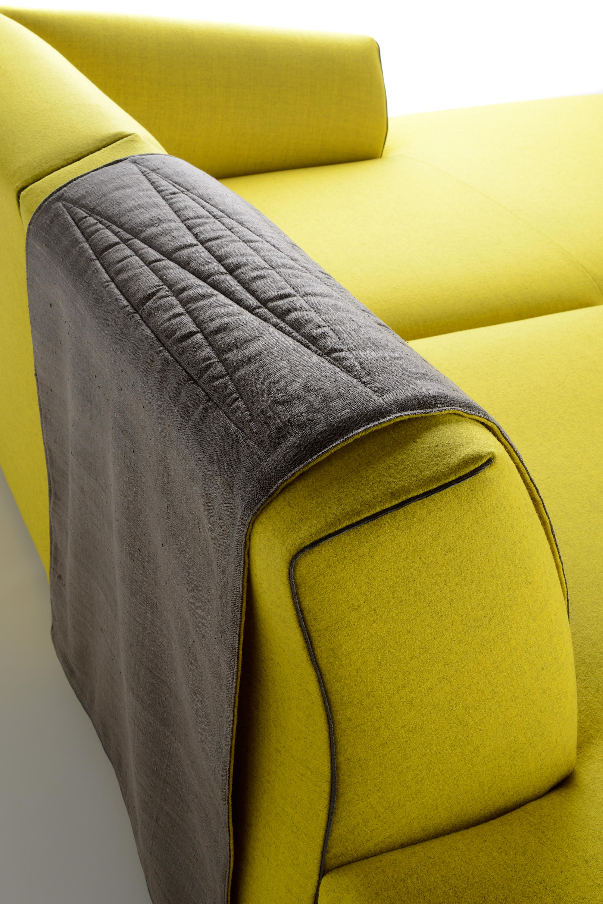 Thea是新的软垫系统,源自女性对形状的解释以及明显对立的指导原则之间的平衡:舒适,舒适-整洁,动态-严格,轻巧-高度紧凑。Thea的折衷主义在于对不同观点的和谐研究:正面正交,侧面倾斜和背面凹入。沙发具有高度的原创性和动感,只是因为它融合了所有这些语言:它是一种投射和形状的游戏,赋予其设计独特且可识别的标志。涂层增强了女人味:就像包裹包裹和垂褶的连衣裙一样,褶皱完美地粘在模块的形状上。通过使用不同的接缝,对剪裁细节以及意大利剪裁的要求给予特别关注。在三种不同的颜色(白色,鸽子灰色和无烟煤灰色)中应用偏斜接缝和对比度磨边,以定义角度,曲线和形状。五个功能性配件完善了产品系列:头枕,靠垫,方形垫子,被子和铝制托盘。
