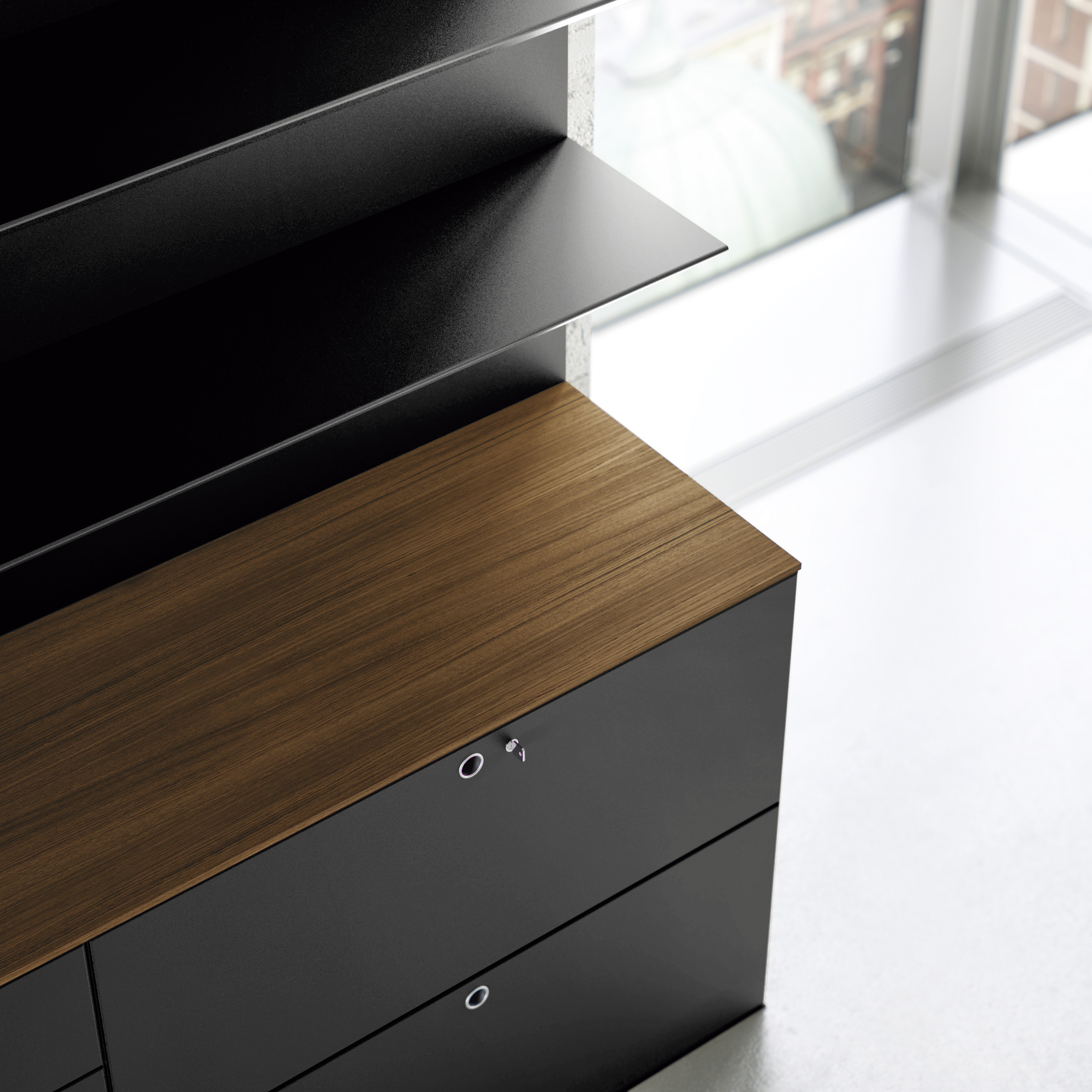 Multipli系列的又一个享有声望的发展:设计概念树立了持久的榜样。45°边缘的鞋面完全用皮革覆盖,是Gino Valle不寻常的设计特色。一种充满温暖和个性的材料,提供各种颜色以创造独特的环境。 独特的45°边缘营造出非凡的视觉效果,使顶部看起来超薄,并为各种配置赋予动态外观。服务单元的优雅黑色饰面启发了皮革覆盖物的多种颜色组合。 配合QUADRO使用的白面整理储物单元的范围也在不断扩大:QUADRO是一种多功能壁挂式元件,其把手集成在单元的主体中。可以将QUADRO的手柄安装在顶部或底部,并向左或向右开口,以满足所有要求。