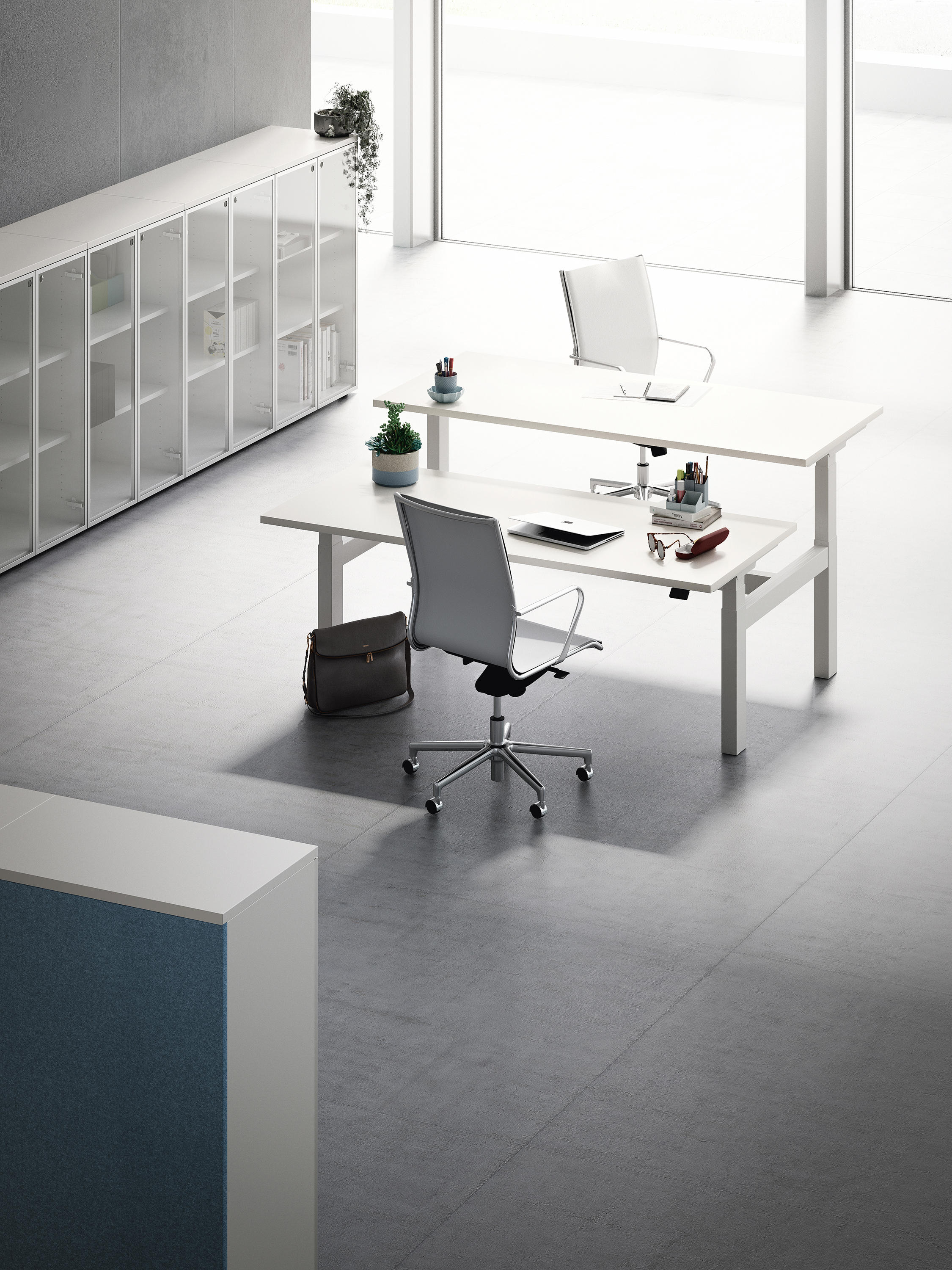 多功能和智能。Sistema28将技术,人体工程学和美学完美融合。电源和数据电缆易于访问和管理,这要归功于宽敞的电缆走线,带有双侧盖和推拉打开系统。 隔音效果。办公桌可以配备织物,有机玻璃或吸音Nanofor制成的屏风。最后一种选择包括将MDF面板粘合到层压板上。MDF支架上打有8毫米的孔,每平方米可形成约8000个回音室,以确保出色的吸声效果。前孔的直径为0.5毫米,每2毫米分布。 透明度满足隐私。办公桌可以配备前面板和透明或不透明的屏幕。前面板还具有120厘米高的版本,并带有铝制导轨,该导轨可以配备一系列配件,例如额外的屏幕或储物托盘。 灵活的系统。Extralong桌子适用于办公室和行政办公空间,可以与较低的服务模块结合使用,为组合增加了额外的空间。 温馨的空间。Sistema28专为工作场所的社交生活新概念而设计,可以共享从非正式会议到激动人心的休息等各个时刻。