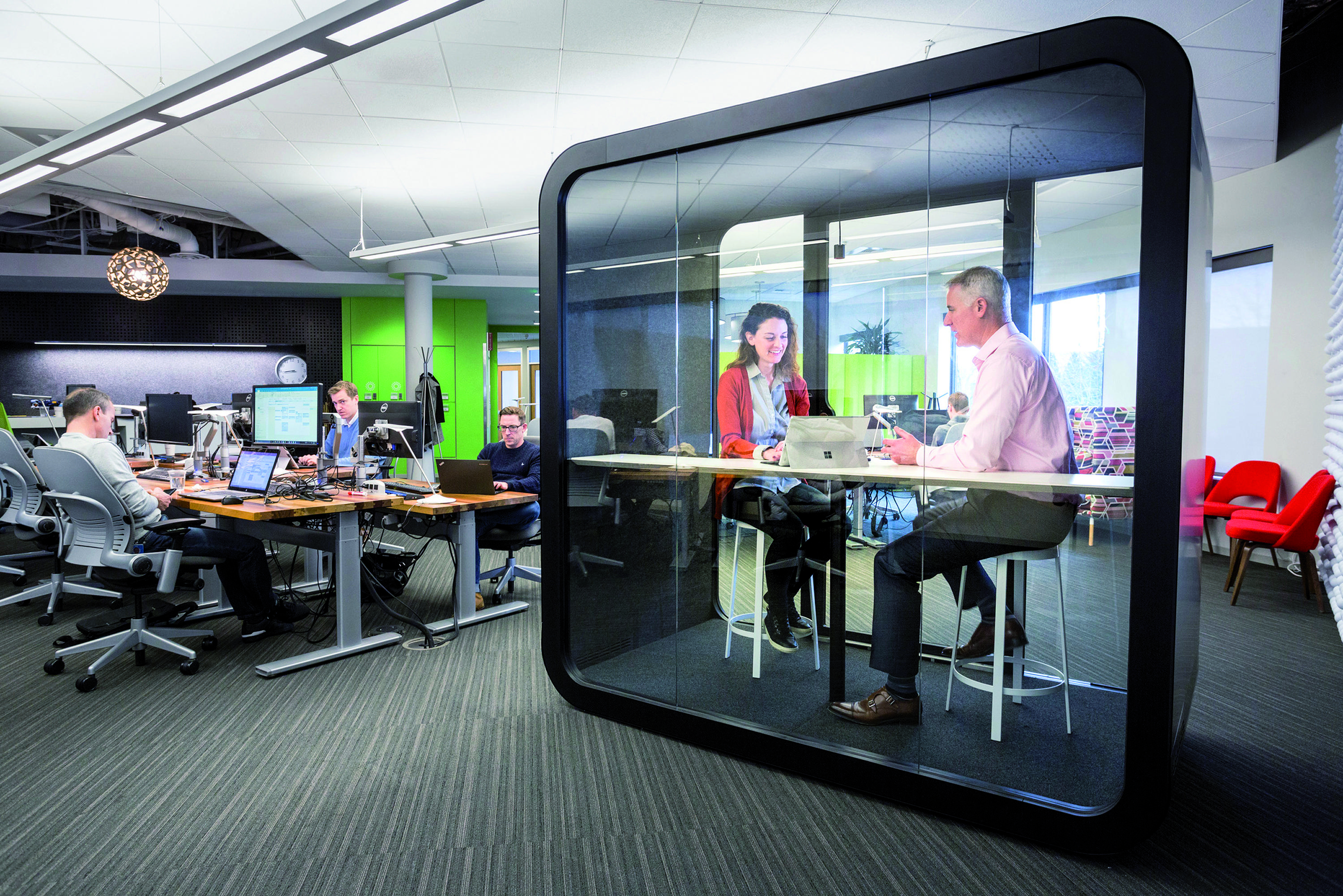 Framery 2Q是会议荚概念化打击缺乏隐私在开放式的办公楼层平面图。可同时容纳四到六人,Framery 2Q为用户提供了一个多功能的工作场所提供的私密性和舒适性意识高涨。 Framery 2Q共有三种家具配置,因此客户可以定制产品以满足其空间的特定需求。具有两个高度选项的会议桌是笔记本电脑使用或车间的最佳选择。客户还可以选择没有家具的吊舱,而无需使用家具他们刚刚选择了适合自己的装备。今年初推出的第三种室内装饰选项是定制的L形沙发,旨在提供最佳的舒适度。在工作日或社交区域退缩。客户可以通过在沙发对面的墙上安装显示屏来增加吊舱的功能。其他选项包括两个白板和轻巧的独立式浮动桌子,可用于更符合人体工程学的工作空间。高品质的材料和表面处理使Framery 2Q是办公室中时尚却引人注目的焦点。