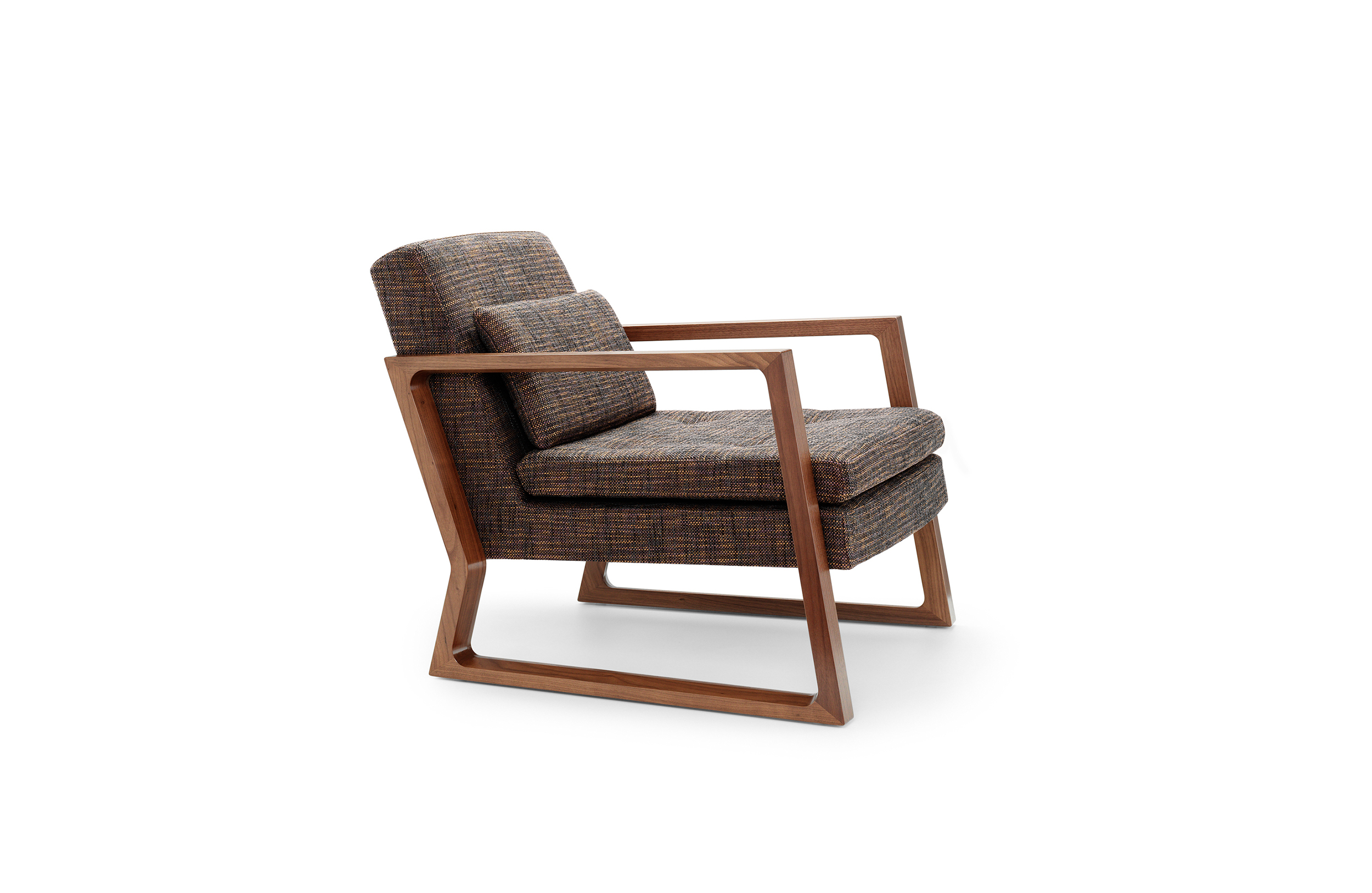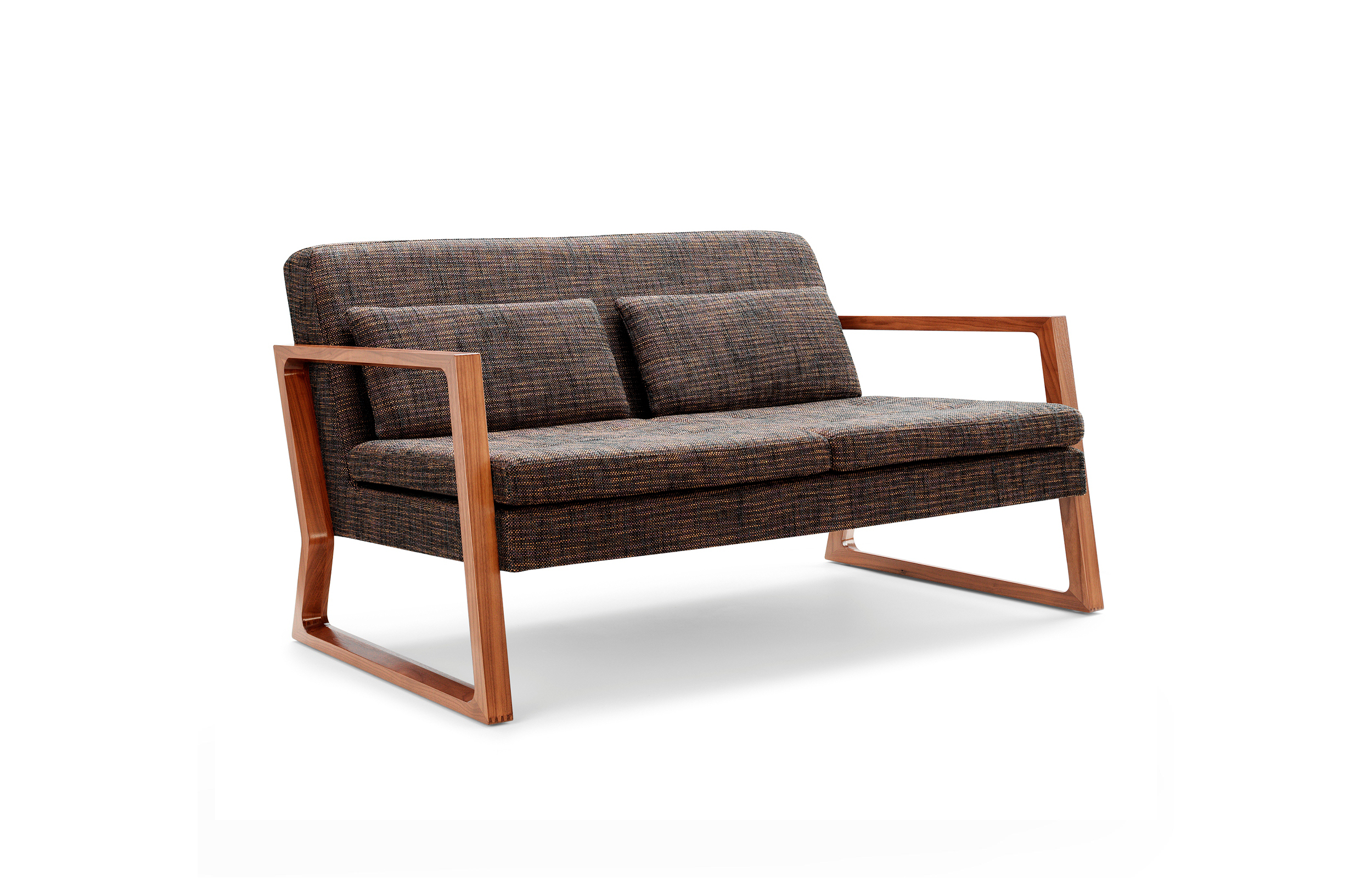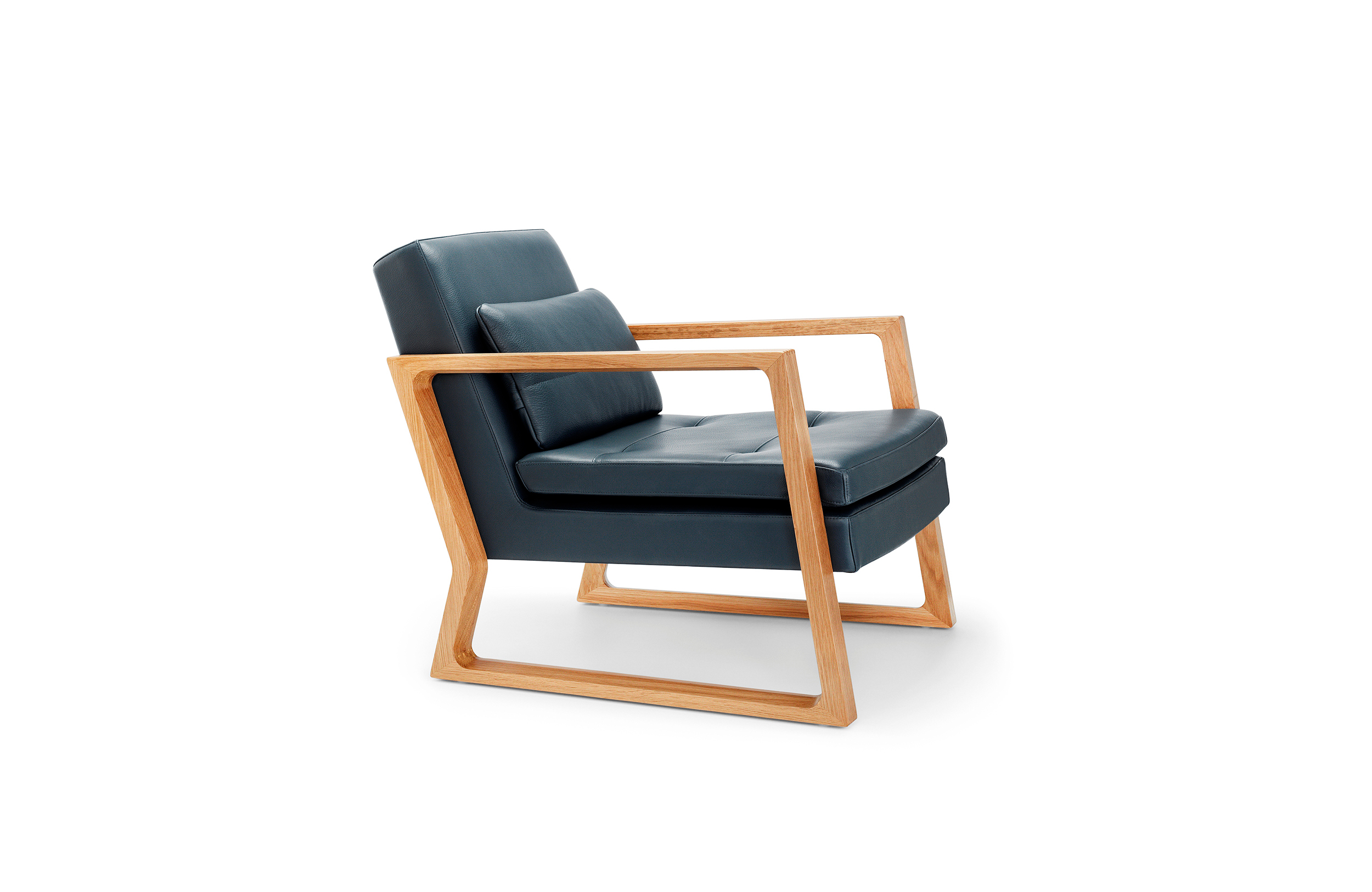 Luge系列采用黑色美国胡桃木或欧洲橡木制成的实木框架,座椅和椅背采用线性针脚细节设计。 框架上的梳形接头和斜边细节完成了令人惊叹的效果。
