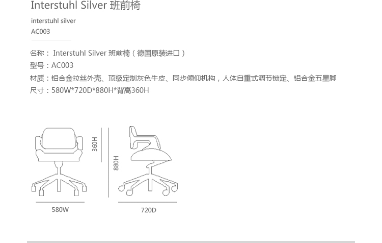 办公椅|现代真皮中班椅|办公家具|设计师家具| Interstuhl Silver 中班椅
