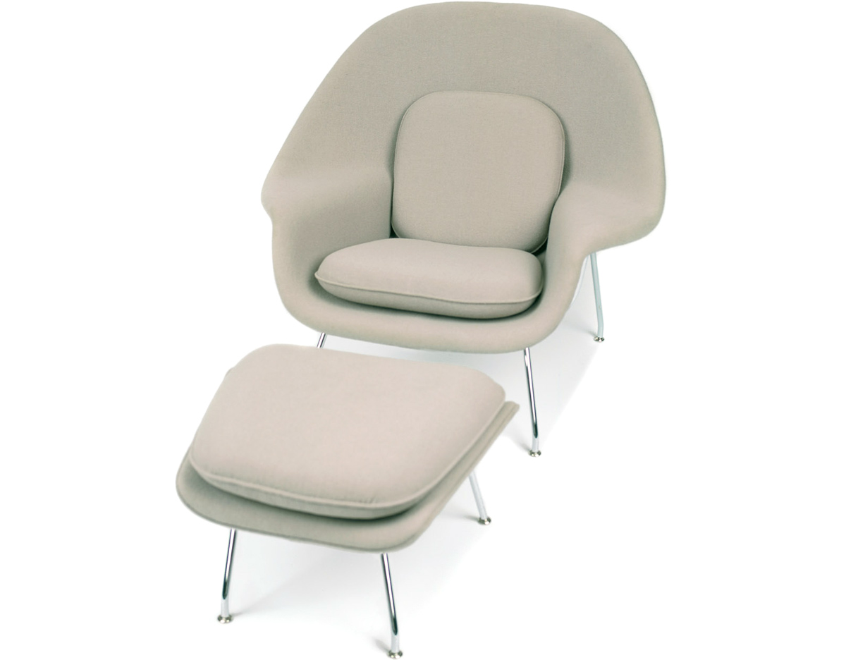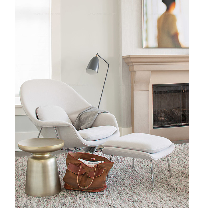 Womb Chair 的基本构造是由抛光镀铬或雾面钢管底座,以一体成型的泡棉包覆框架所组成。 Eero Saarinen 设计这张椅子挑战了一般世俗的规则,打破窠臼,树立了新的现代设计和舒适的标准,充分显示他的高超才华。