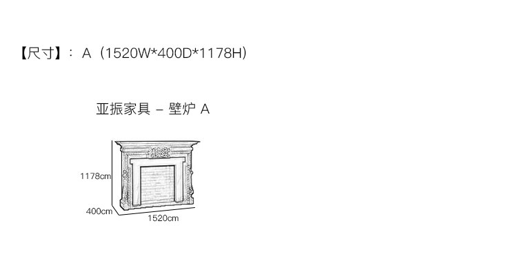 亚振家具 - 壁炉 产品尺寸/示意图