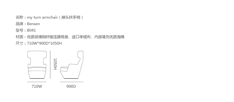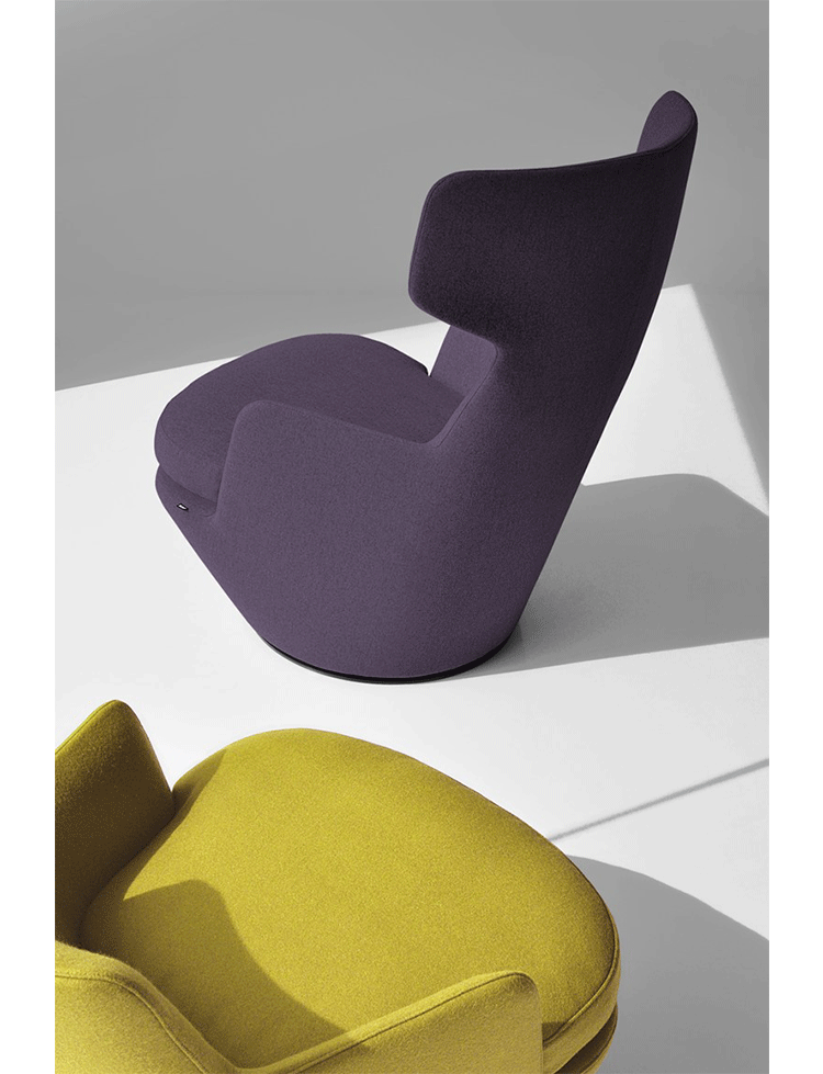 My Turn Armchair(掉头扶手椅)是Niels Bendtsen设计的可360度旋转的扶手椅,是受其同系列U Turn Armchair(掉头扶手椅)的启发进行造型设计的,与Hi Turn Armchair(掉头扶手椅)同款型,它除了保持U Turn Armchair(掉头扶手椅)的各种特点外,特别增加了靠背的高度,依座更舒适。进口玻璃钢压膜椅身、进口羊绒布、软包内部填充进口高弹力海绵,提供最佳的舒适度。椅身织布可拆卸,方便清洗。