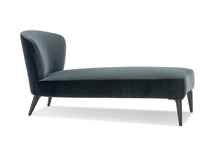 沙发的围裹式靠背特色十足,扶手线条与之完美呼应,以蓝灰色调呈现的压铸铝合金支脚尽展精致设计之美。