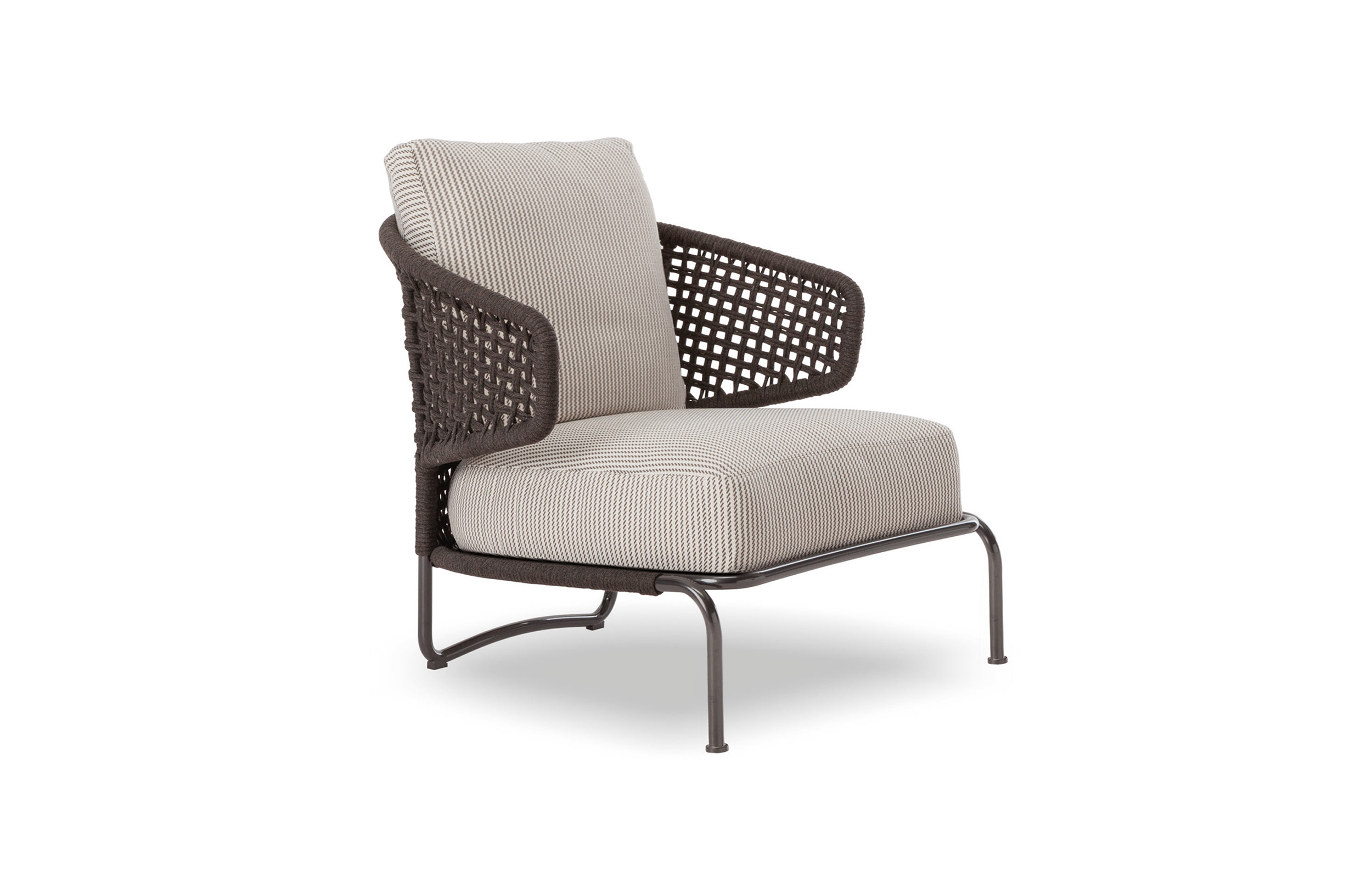 阿斯顿和阿斯顿 “绳”:两者拥有同样的设计内涵和共同的美学语言,和谐的线条和精简的造型可以打造极具创意的室内设计项目,室外和室内环境之间的连续性和统一的风格是其特点所在。阿斯顿 “绳” 室内扶手椅通过不同的材质来重新诠释设计理念。构架为金属材质,表面为Pewter色漆面,靠背采用直径为7毫米的特殊聚丙烯纱线编织而成,有两种颜色可供选择:浅灰色和深棕色。阿斯顿 “绳”室内扶手椅推出了有扶手和无扶手的两个版本,通过清新休闲的造型,可以打造出别具创意的室内和室外互动效果。