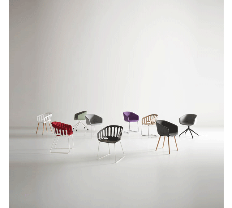 Basket Chair(篮子椅)是Gaber公司最多才多艺的家具系列之一,由意大利设计大师Alessandro Busana设计的。其多种可选颜色、材质、衬垫和框架的选择,是这个系列能够适用多种用途一个特别强有力的特征。篮子椅最重要的是惊人地好看。椅子设计灵感来自传统的柳条家具,具有明显的功能性,能强有力的与周围环境相协调,富有韵律感。椅子具有优雅图形组合的特点,可自由转换。可以选择各式各样的基础脚架,椅子很容易可叠起堆放的,可以在室内或室外使用,可用在休息室也可以用作商业、办公。经典的4腿的金属脚架,可选择6种不同颜色,设置有特殊软垫和防滑可移动垫,塑料和织物塑造了一个有独创性的对比。