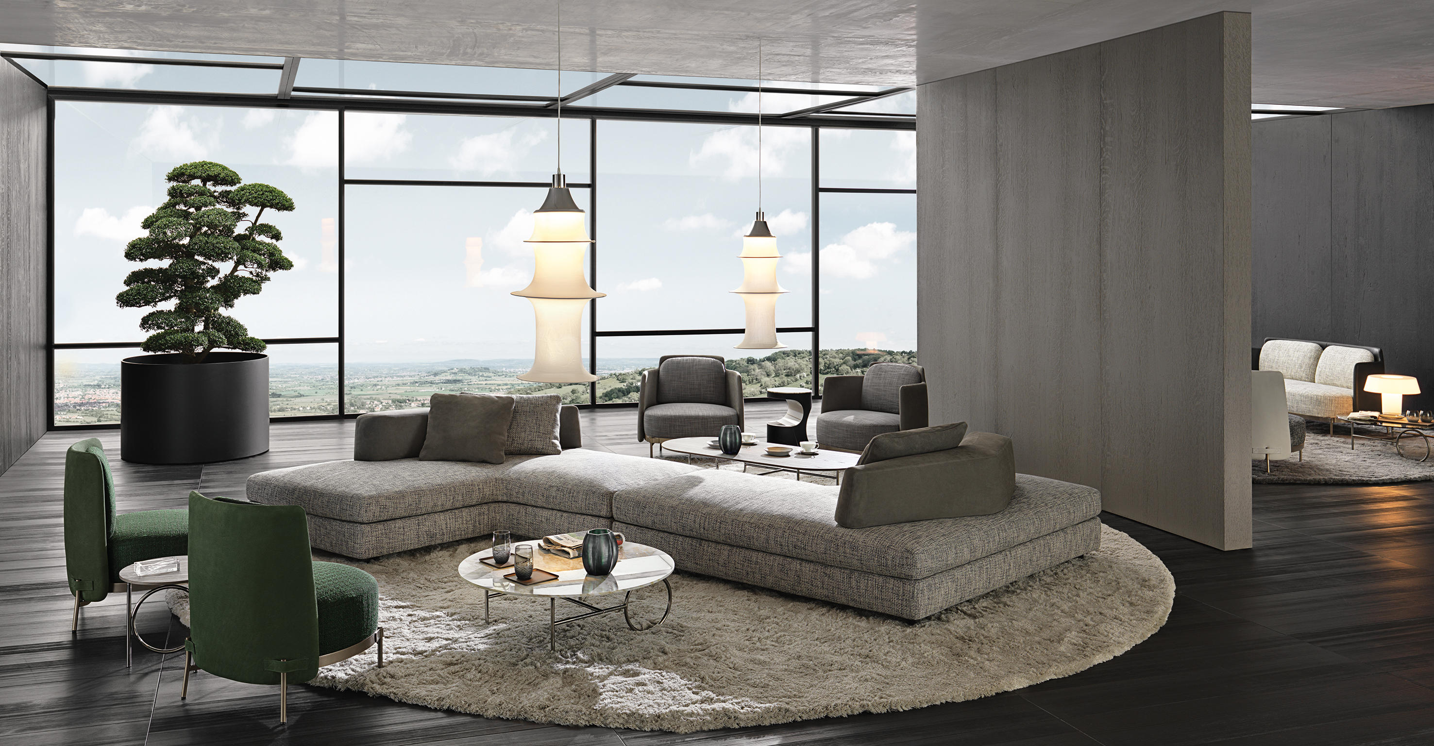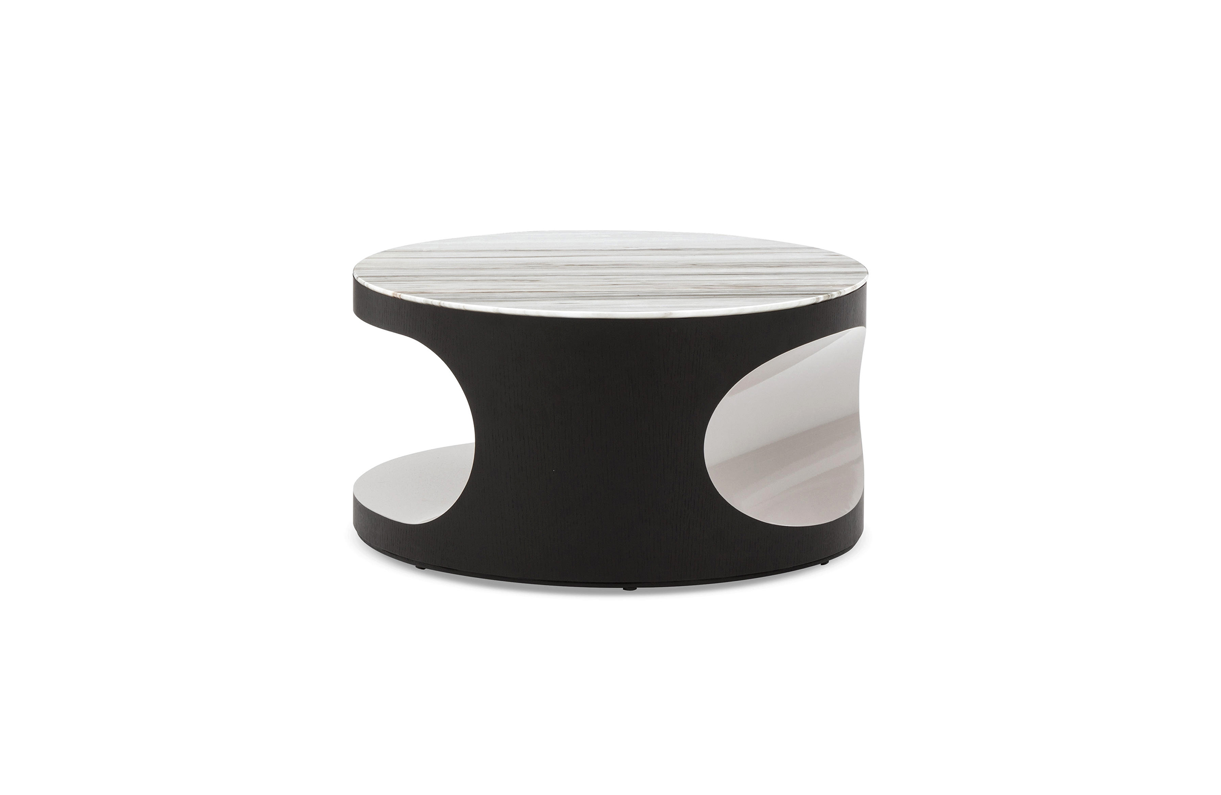 Boden有两种不同的高度和不同的比例,在侧桌版本中更纤细,在咖啡桌的解决方案中更紧凑,Boden被黑色的pate de verre或Zebrino大理石覆盖。